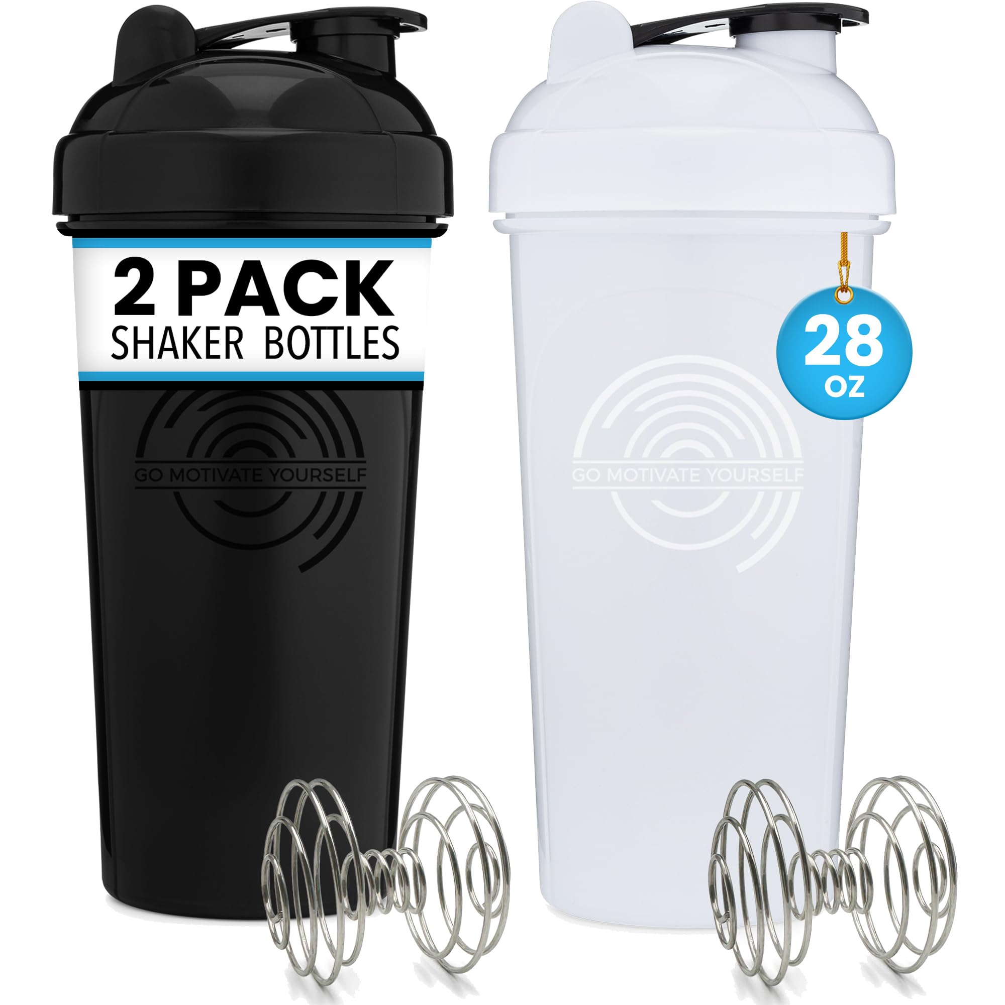 GOMOYO [Paquete de 2] Botella agitadora de 28 onzas (blanco, negro) | Vaso mezclador de proteínas paquete de 2 con agitadores | El