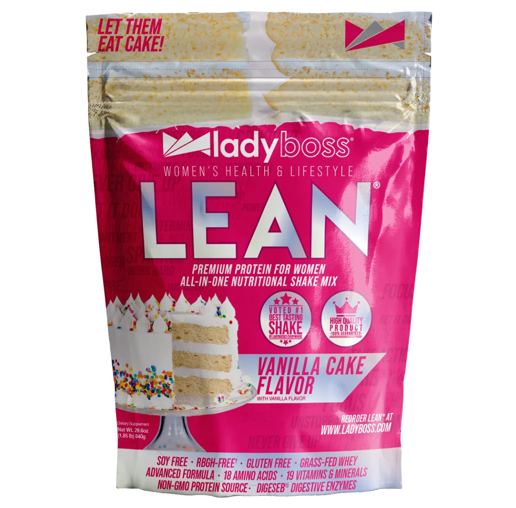 LadyBoss Lean Protein Shake sabor a pastel de vainilla, reemplazo de comidas y apoyo para el antojo con suero alimentado con hierb