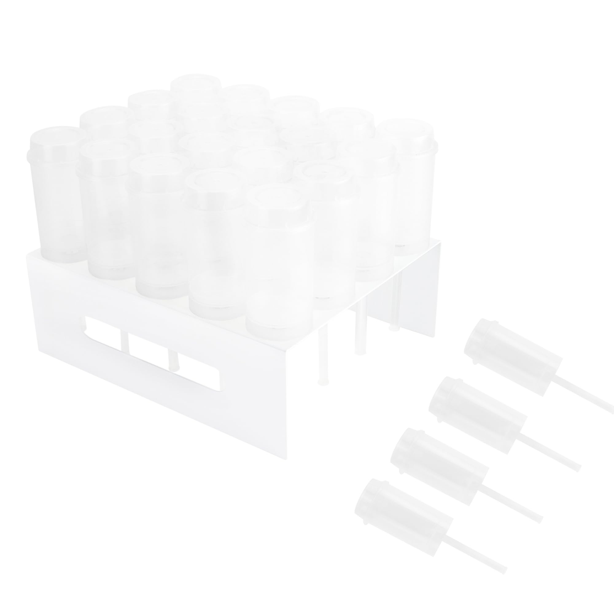 ihomecooker Recipientes de plástico transparente con tapas, base y palos, paquete de 80 (80 unidades) (24 piezas + soporte de meta
