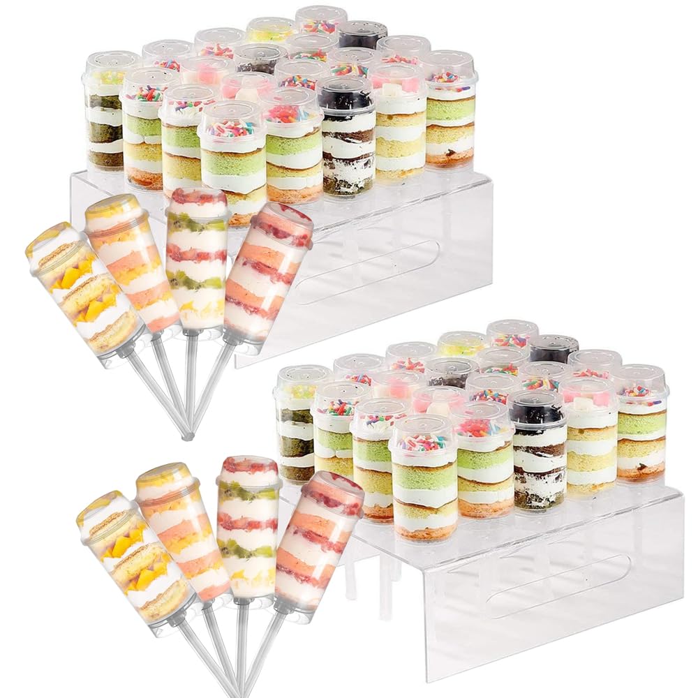 Geetery Juego de 50 recipientes de plástico transparente acrílico para tartas, incluye 2 soportes para tartas de 20 agujeros con t