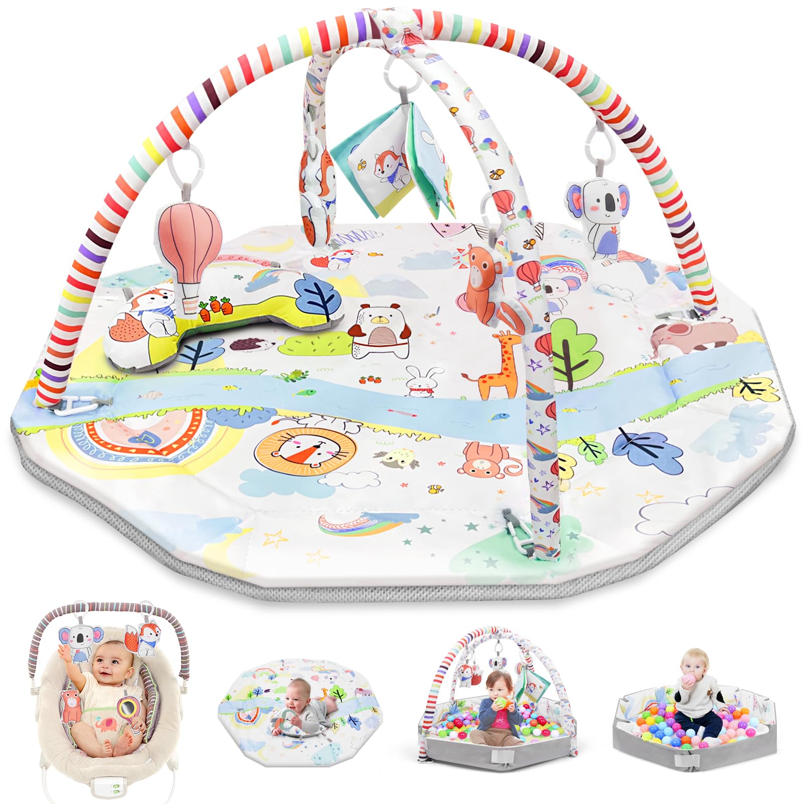 Alfombrilla de gimnasio 8 en 1 para bebé, tapete de actividad para el tiempo boca abajo, piscina de pelotas y tapete de juego suav