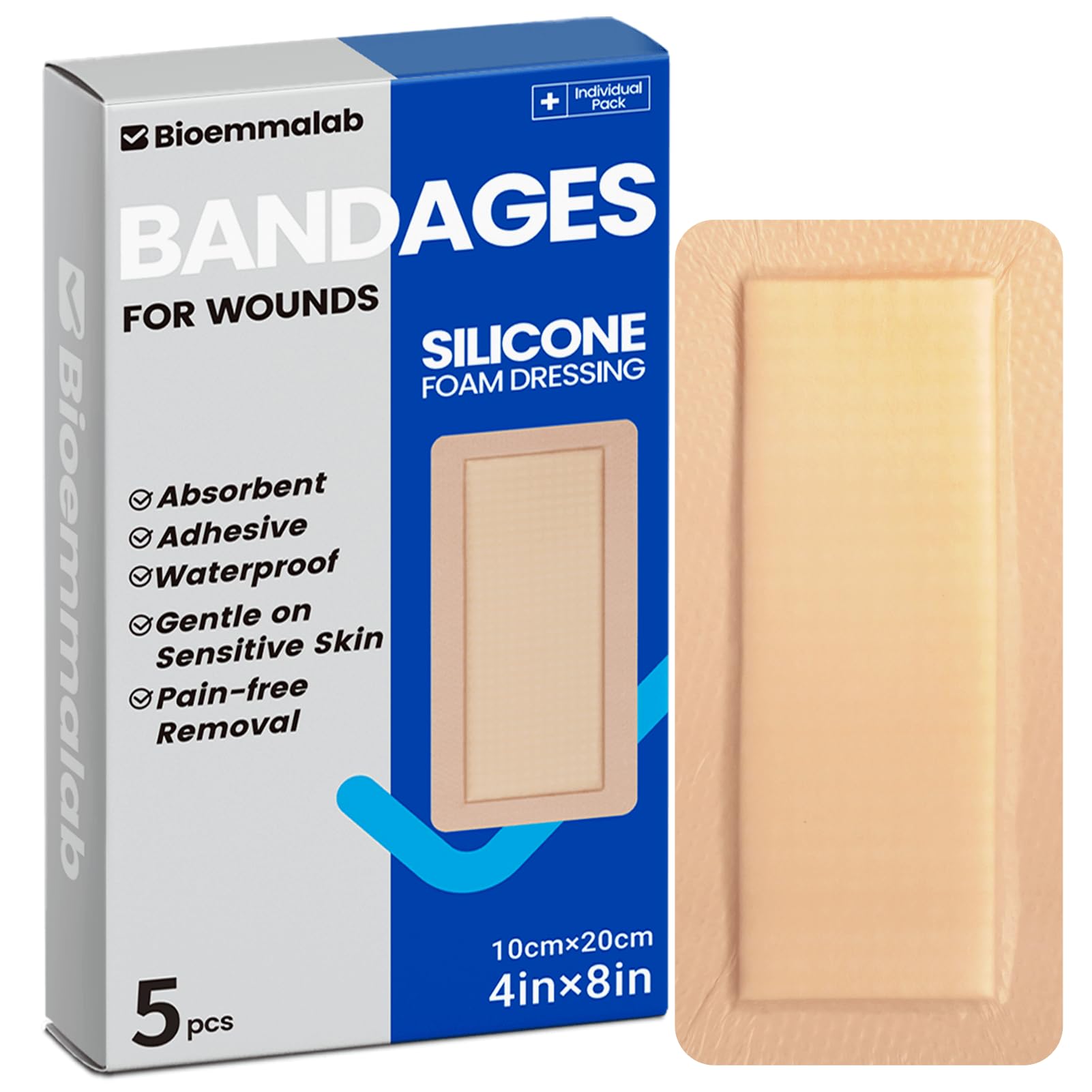 Vendajes impermeables grandes de espuma de silicona de 4 x 8 pulgadas para cuidado de heridas de piel sensible, almohadilla cohesi