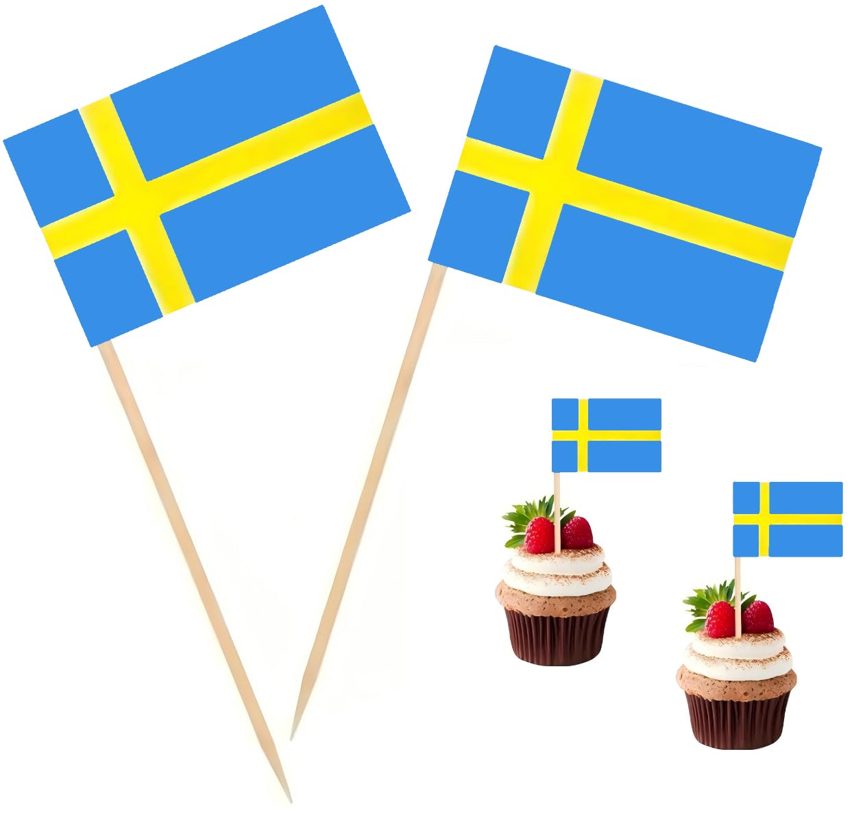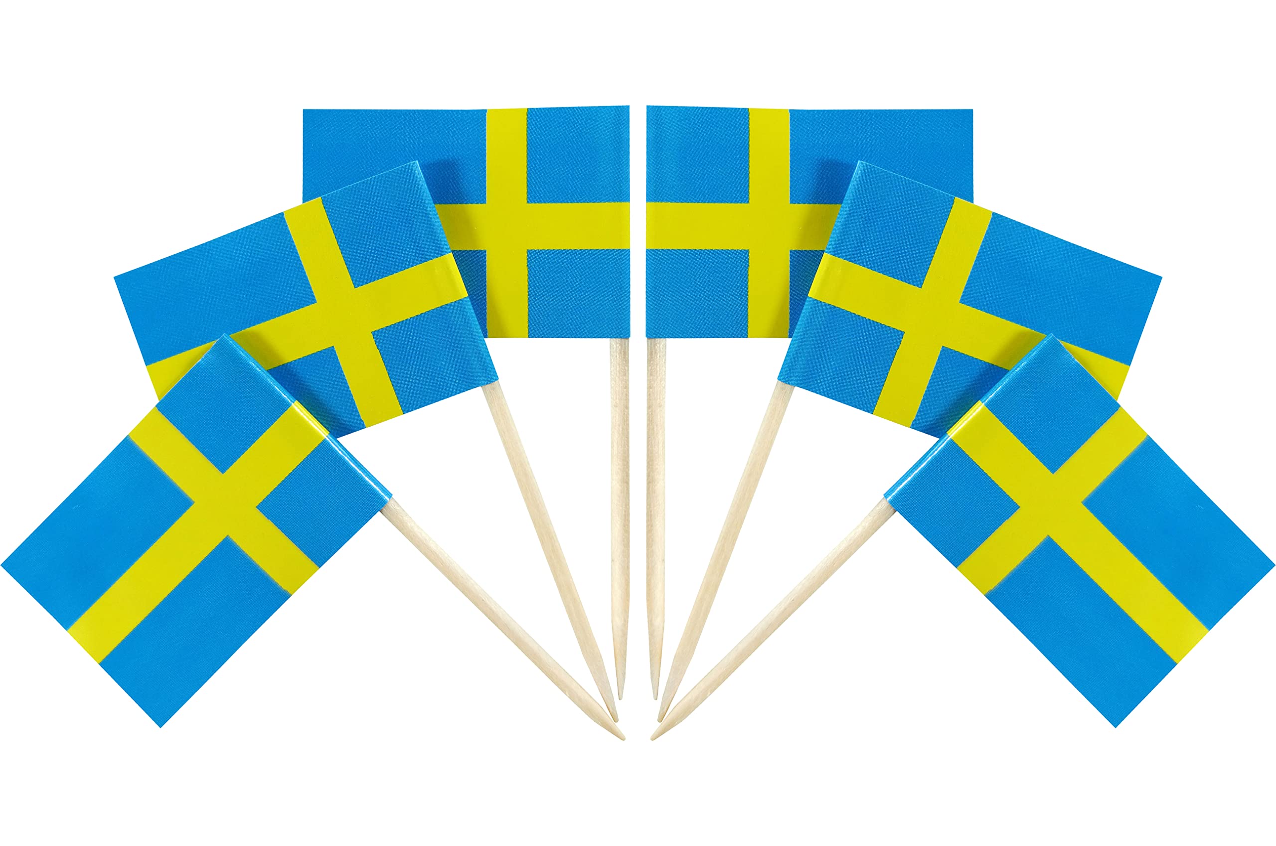 QQSD Bandera de palillo de dientes de Suecia Mini Banderas de decoración de cupcakes, 100 piezas