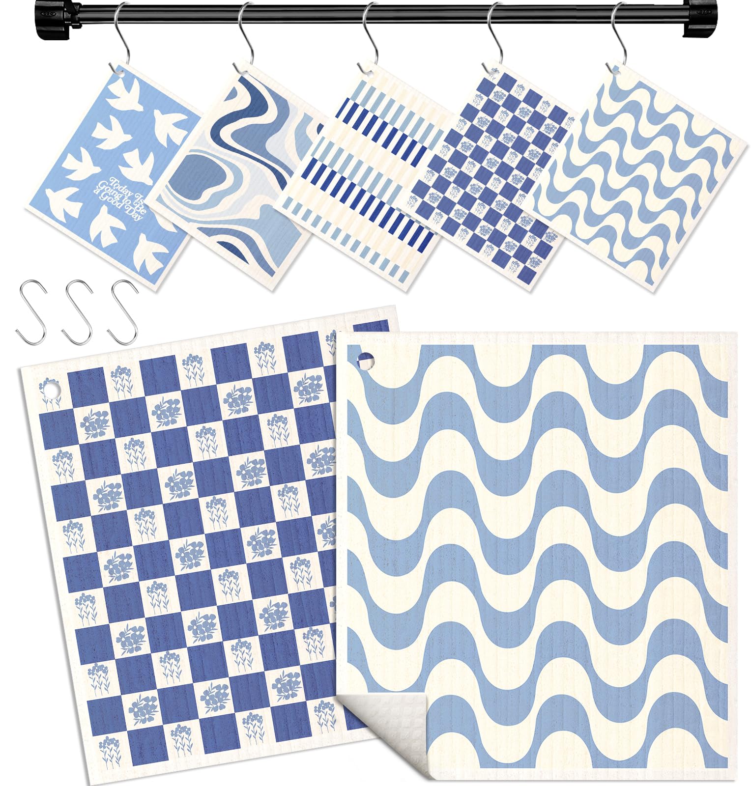 Paños de cocina suecos con ganchos, paños reutilizables para lavar platos, de secado rápido, lindos y divertidos, paquete de 5 pañ