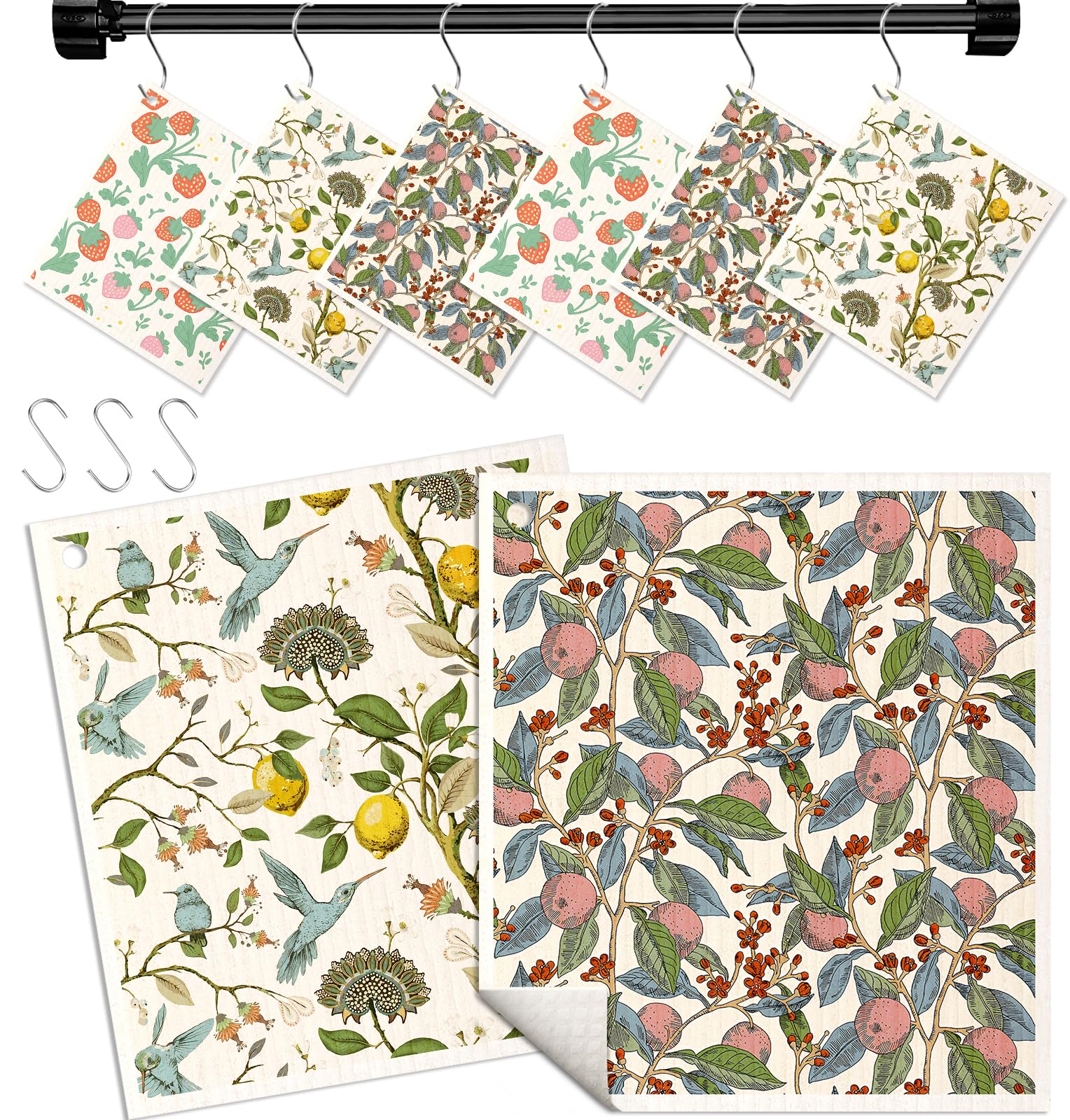 Paños de cocina suecos con ganchos, paquete de 6 paños reutilizables para lavar platos, de secado rápido, lindos y divertidos paño