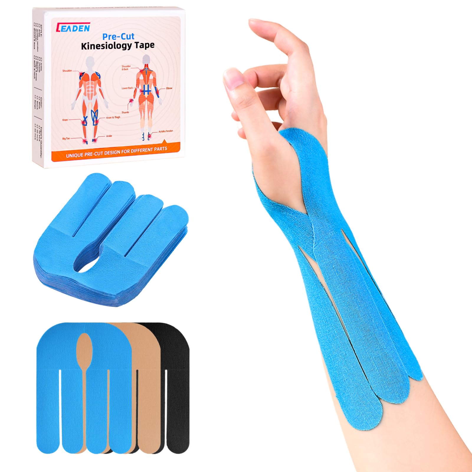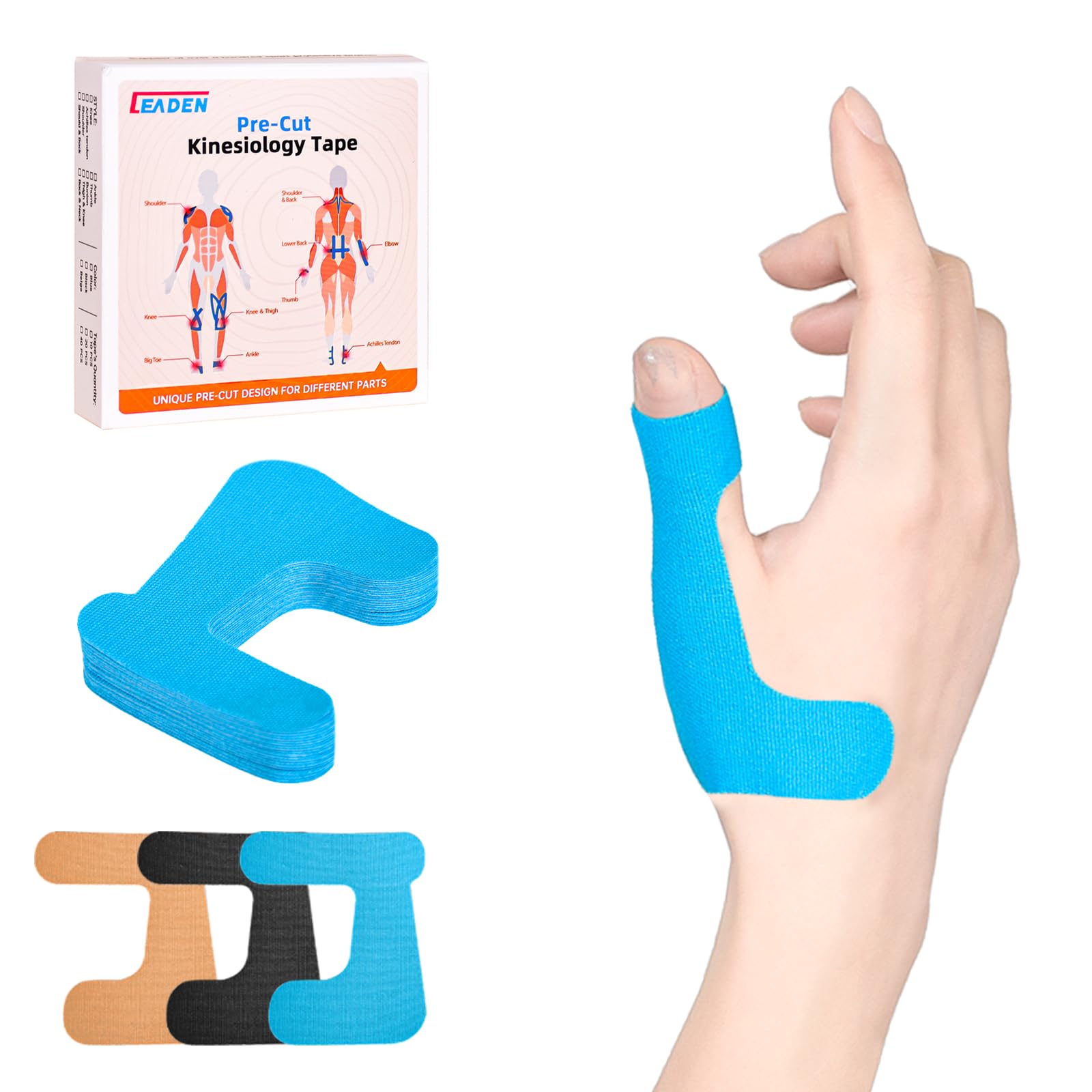 IEADEN Cinta de kinesiología precortada para pulgar (mano derecha), 40 unidades, azul