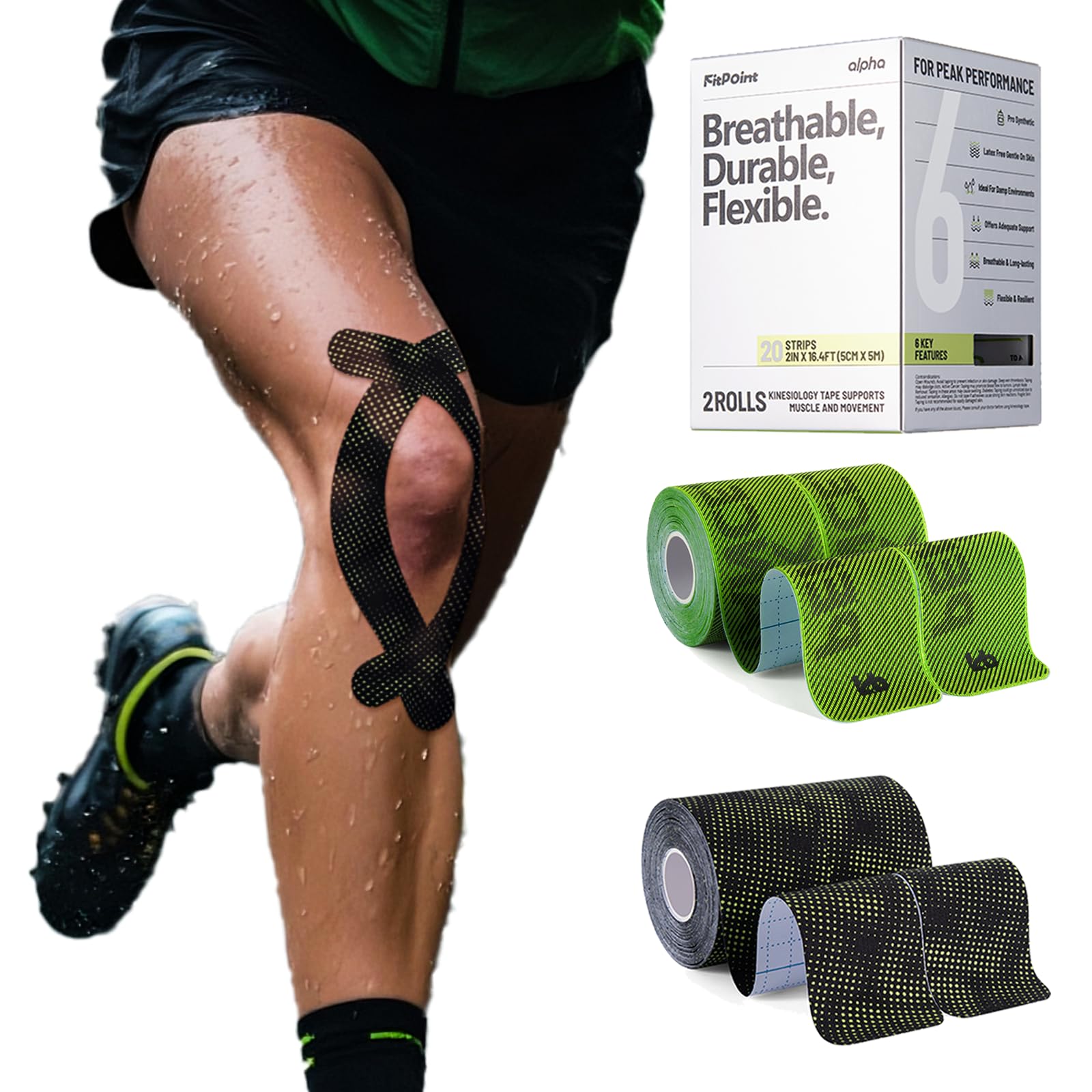 Cinta de kinesiología sintética alfa, cinta atlética ultra adhesiva, 20 tiras precortadas 1 rollo, alivio del dolor y soporte de a