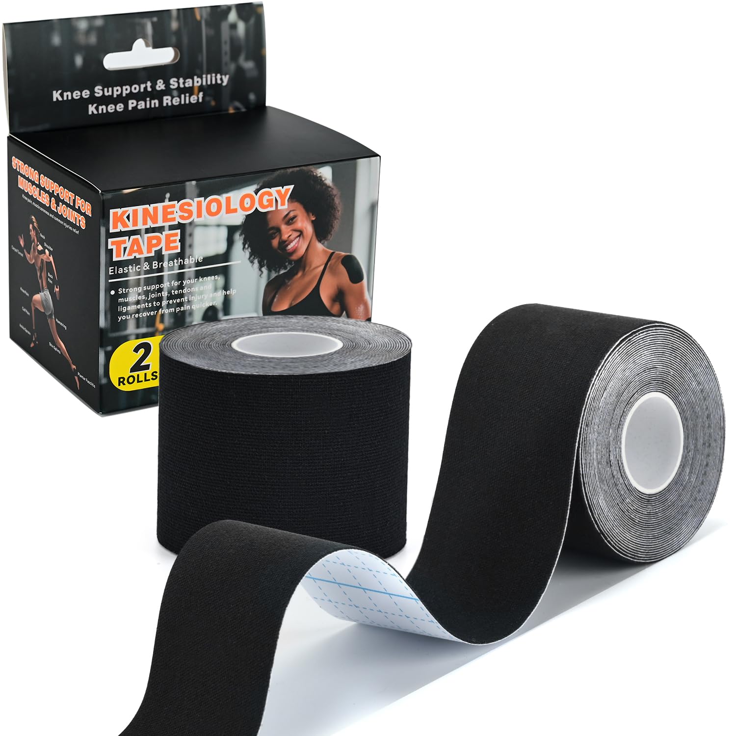 Kinesiology Tape for Knees – Elastic Athletic Tape for Knee Pain Relief, Muscle Strain Relief & Joint Support, Waterproof, Breatha