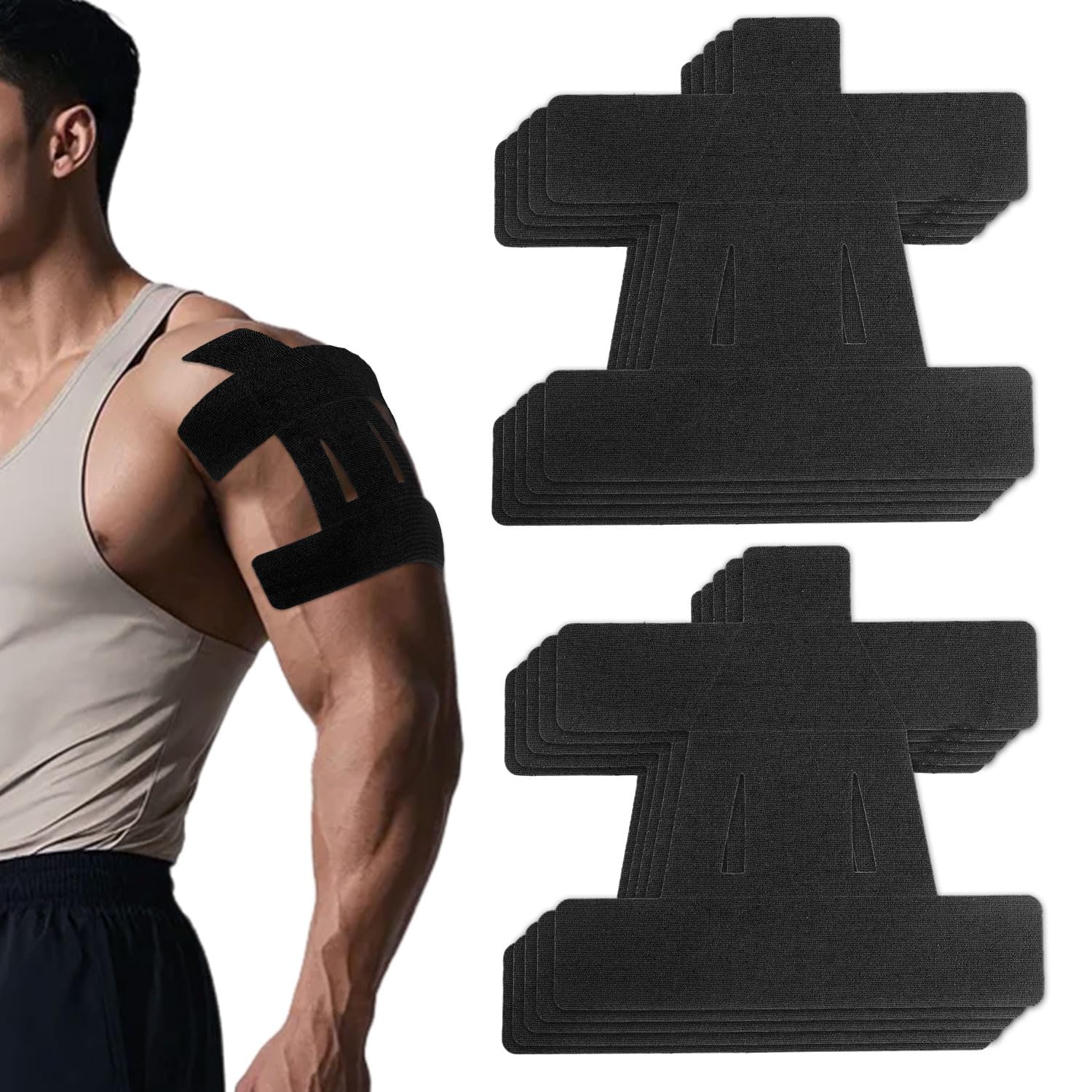 10 cintas de kinesiología para hombros, cinta muscular impermeable, tiras precortadas, transpirables, elásticas, precortadas, acce