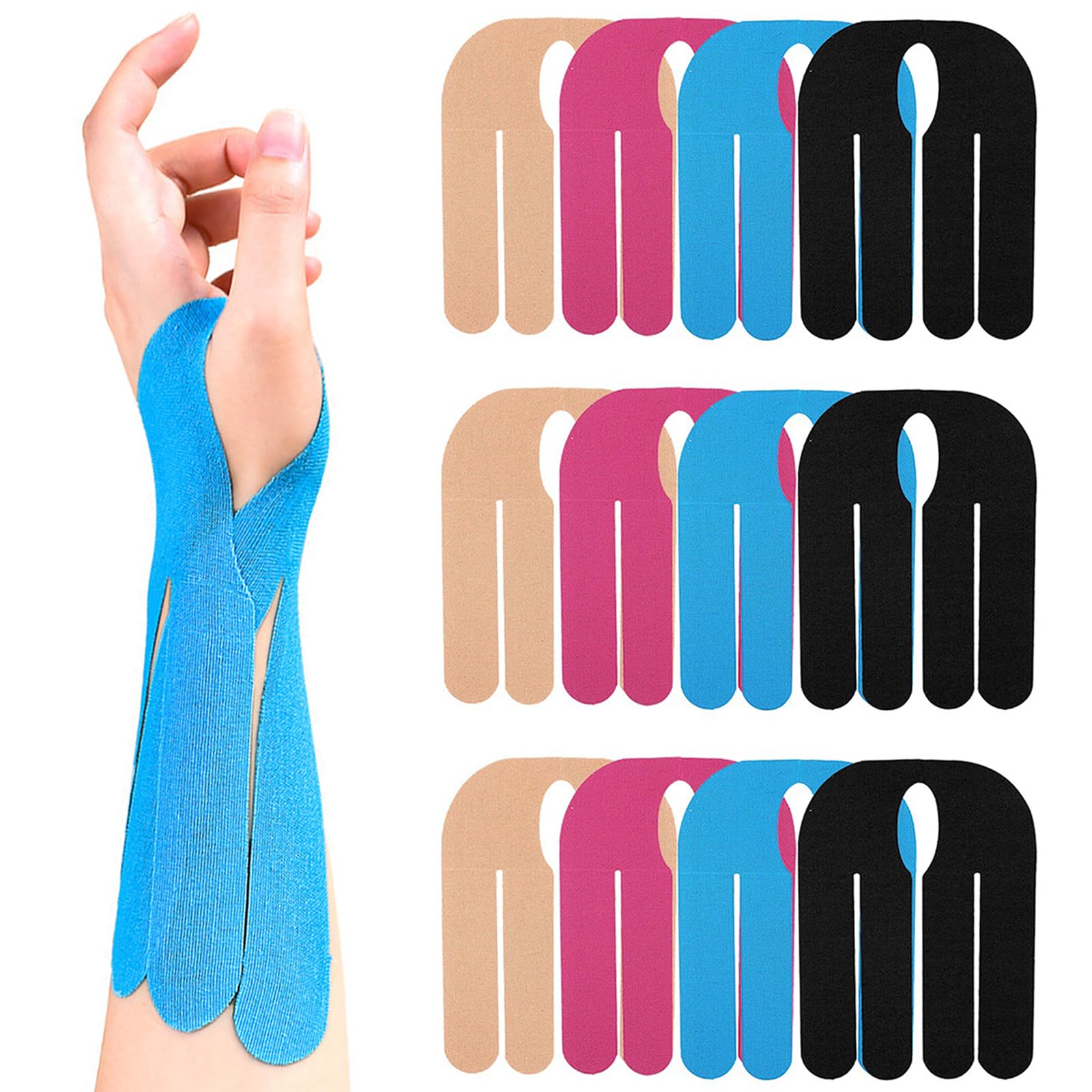 12 cintas de kinesiología para muñeca, cintas de kinesiología precortadas impermeables, transpirables, cinta de apoyo muscular de
