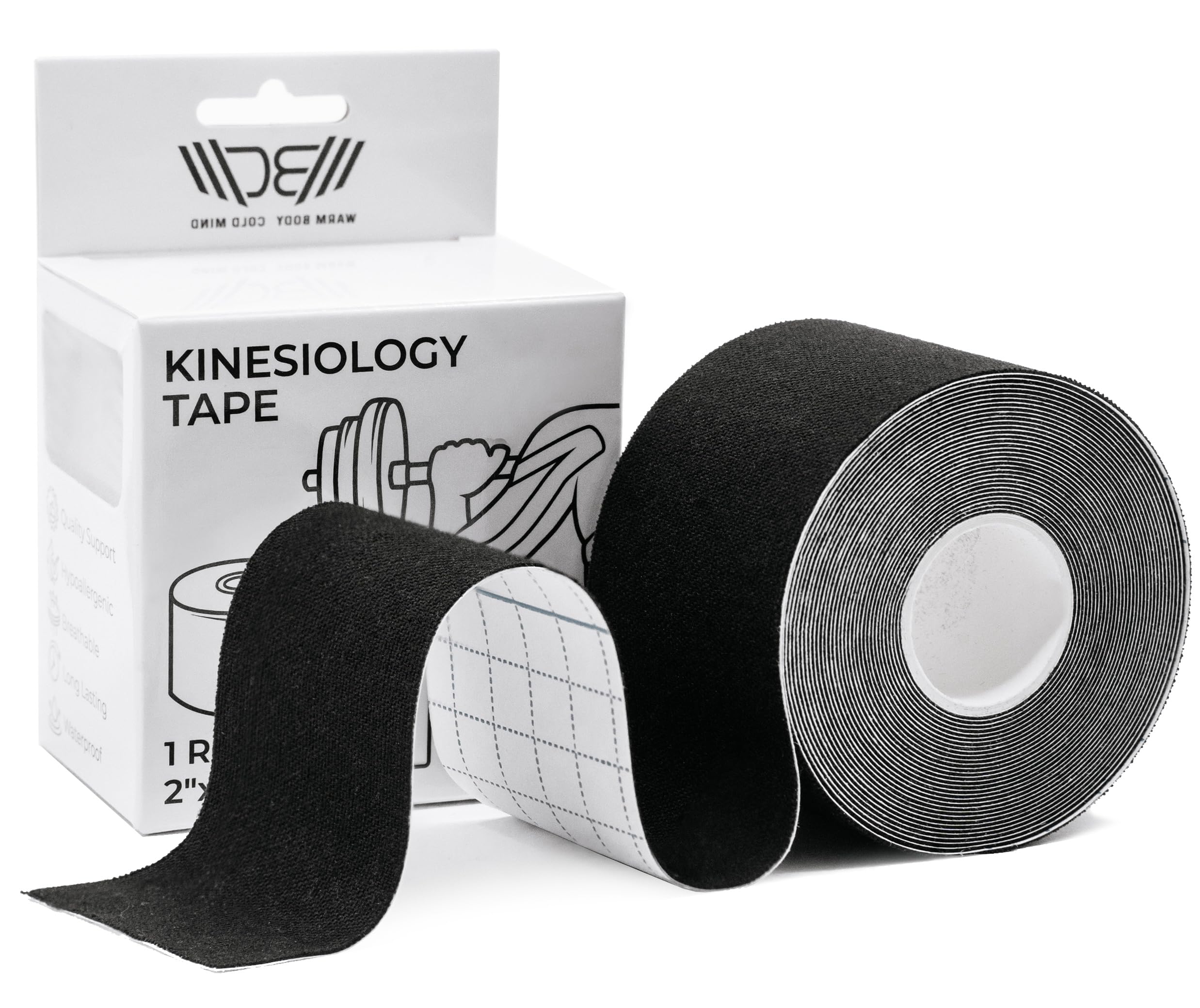 WARM BODY COLD MIND Cinta de kinesiología | 2 pulgadas × 16.4 pies – Cinta deportiva impermeable, cinta elástica atlética, sin lát