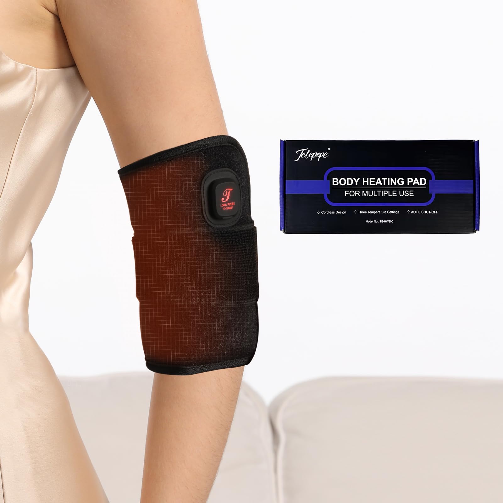 Codera, codera inalámbrica, almohadillas térmicas pequeñas para piernas, alivio del dolor de brazos, 3 niveles de calefacción, 300