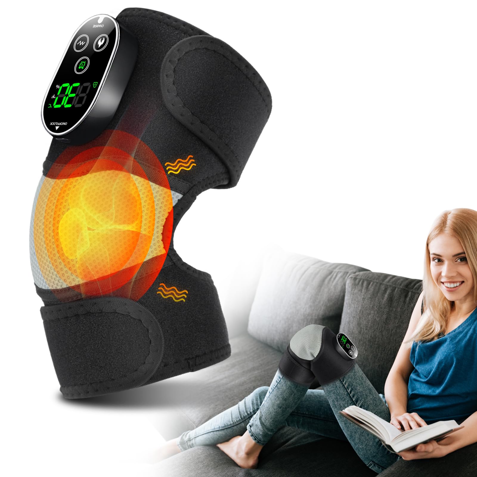 MOAJAZA Masajeador de rodilla con calor y vibración, almohadilla térmica para codo de rodilla, hombro, rodillera calentada para ar