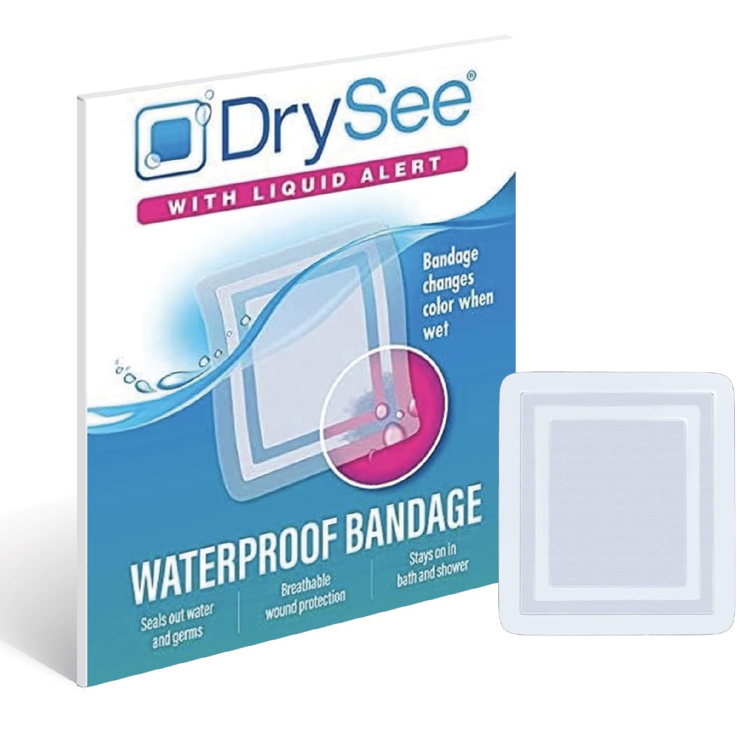 DrySee Vendajes impermeables 4 x 4 – Apósito de película transparente con indicadores de humedad, sin látex, seguro para ducharse