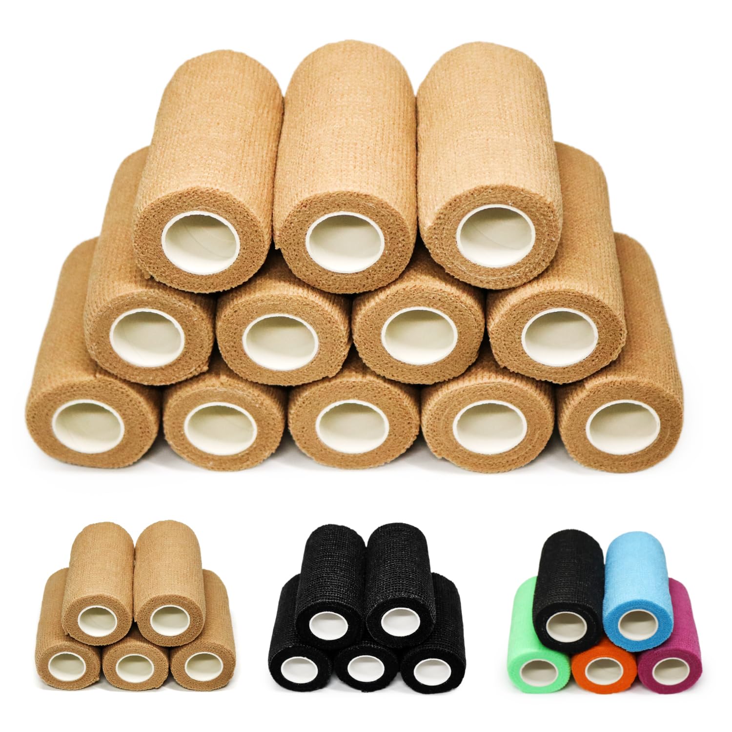 OZER Paquete de 12 rollos de vendaje autoadhesivo de 4 pulgadas x 5 yardas, cinta elástica autoadhesiva para estiramiento atlético