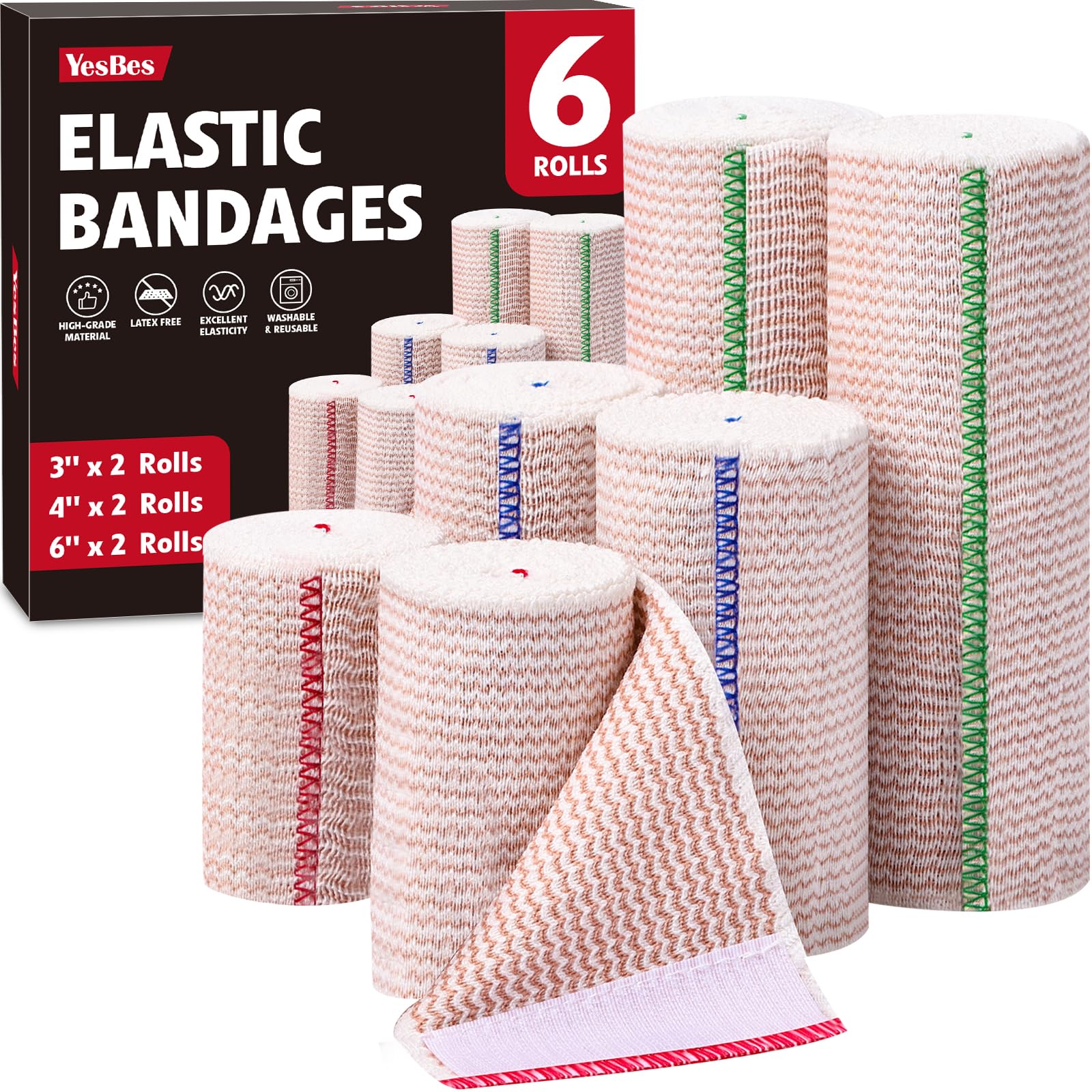 Paquete de 6 vendajes elásticos de alta calidad (2 x 3, 2 x 4, 2 x 6), vendaje de compresión, vendaje de linfedema para piernas, t