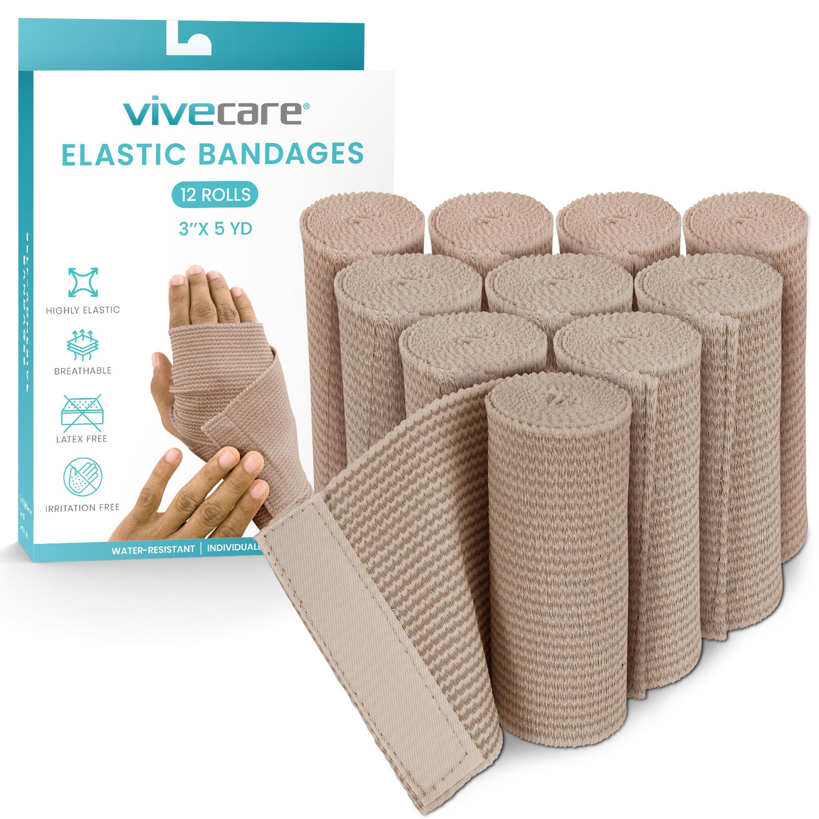 Vendaje elástico con cierre adhesivo de 3 pulgadas x 5 yardas, cinta médica, envoltura autoadhesiva lavable para apoyo muscular, c