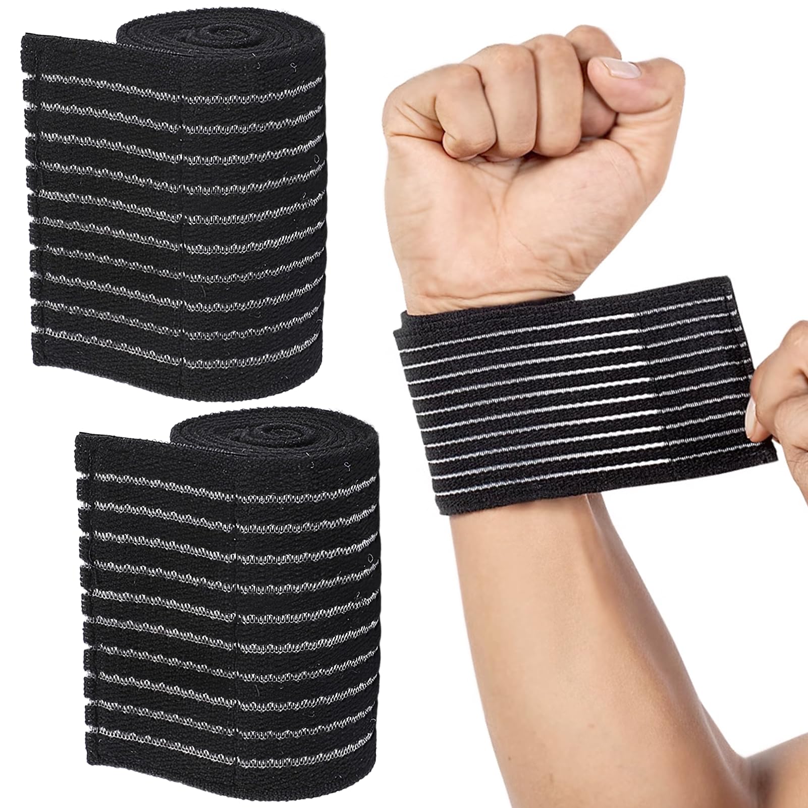Paquete de 2 muñequeras de alta elasticidad, vendaje de compresión para túnel carpiano, levantamiento de pesas y deportes, correas