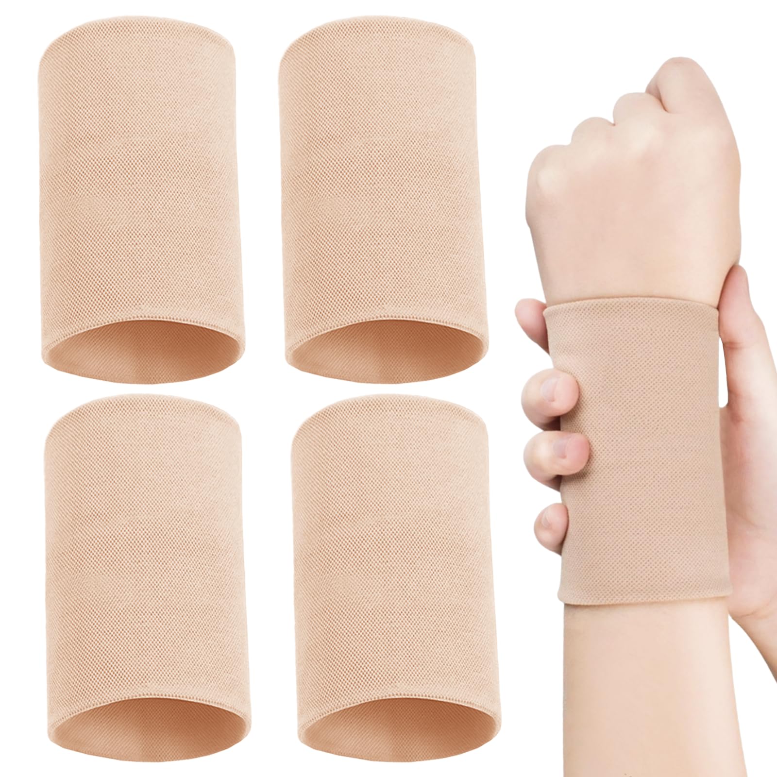 2 pares de muñequeras para hombres y mujeres, color beige, muñequera de compresión, muñequera elástica para muñeca, bandas elástic