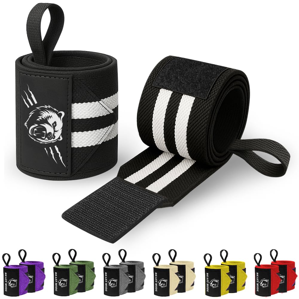 TECEUM Muñequeras de levantamiento de pesas de 18 y 12 pulgadas con lazo para el pulgar, muñequeras resistentes para hombres y muj