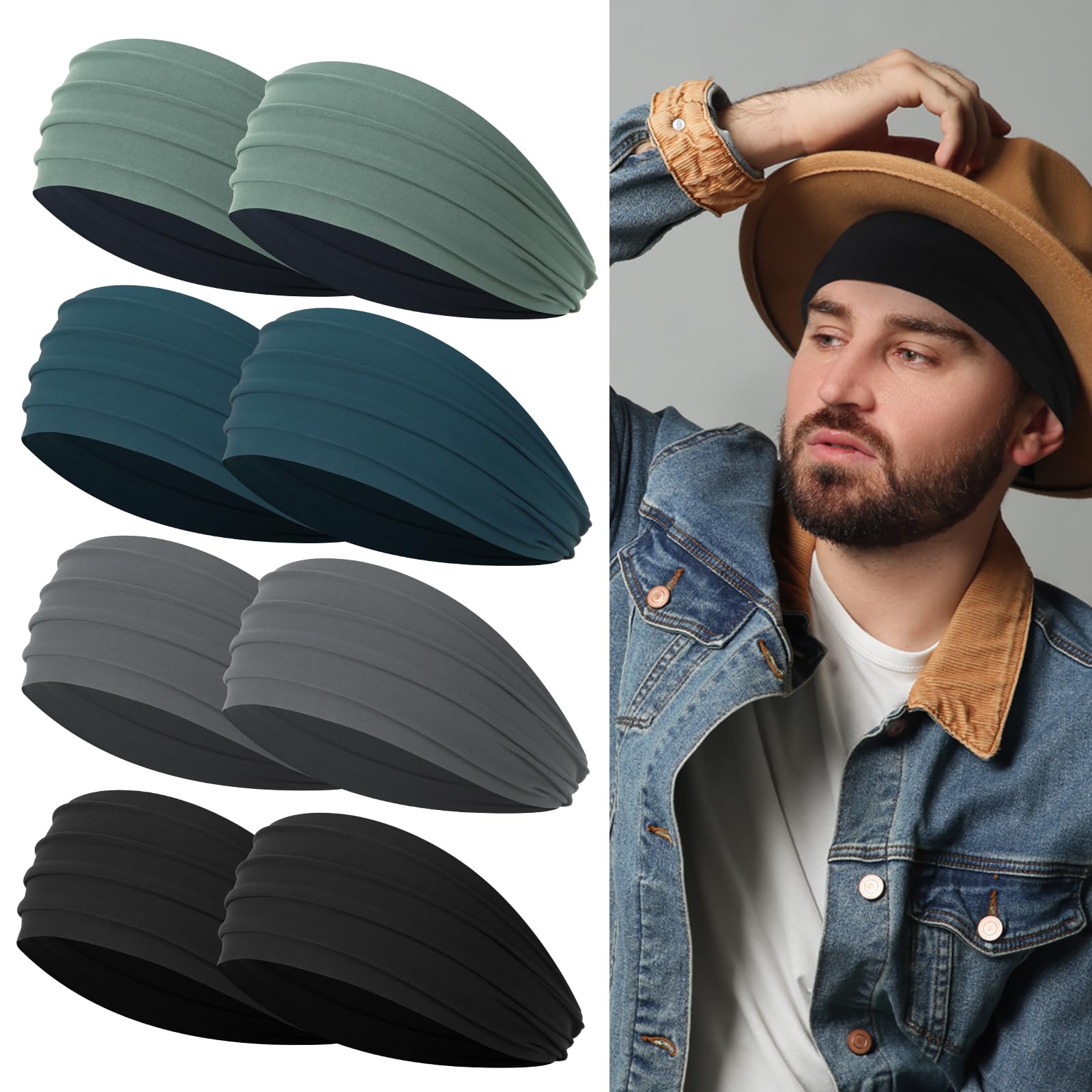 Diademas anchas para hombres, diademas para hombre para cabello largo, bandas para la cabeza para hombres para entrenamiento, corr