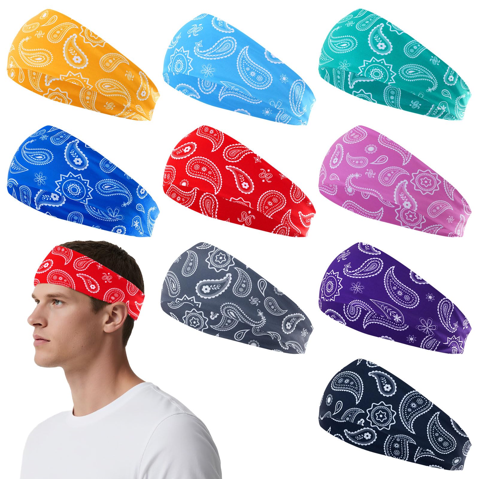 Paquete de 9 bandas para el sudor para hombres, diademas anchas antideslizantes para entrenamiento, correr, ciclismo, baloncesto,