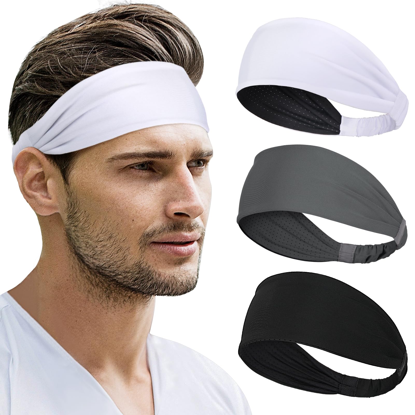 Braylin Diademas deportivas para hombre, paquete de 3 diademas deportivas para correr, fitness, yoga, ciclismo, absorben el sudor,