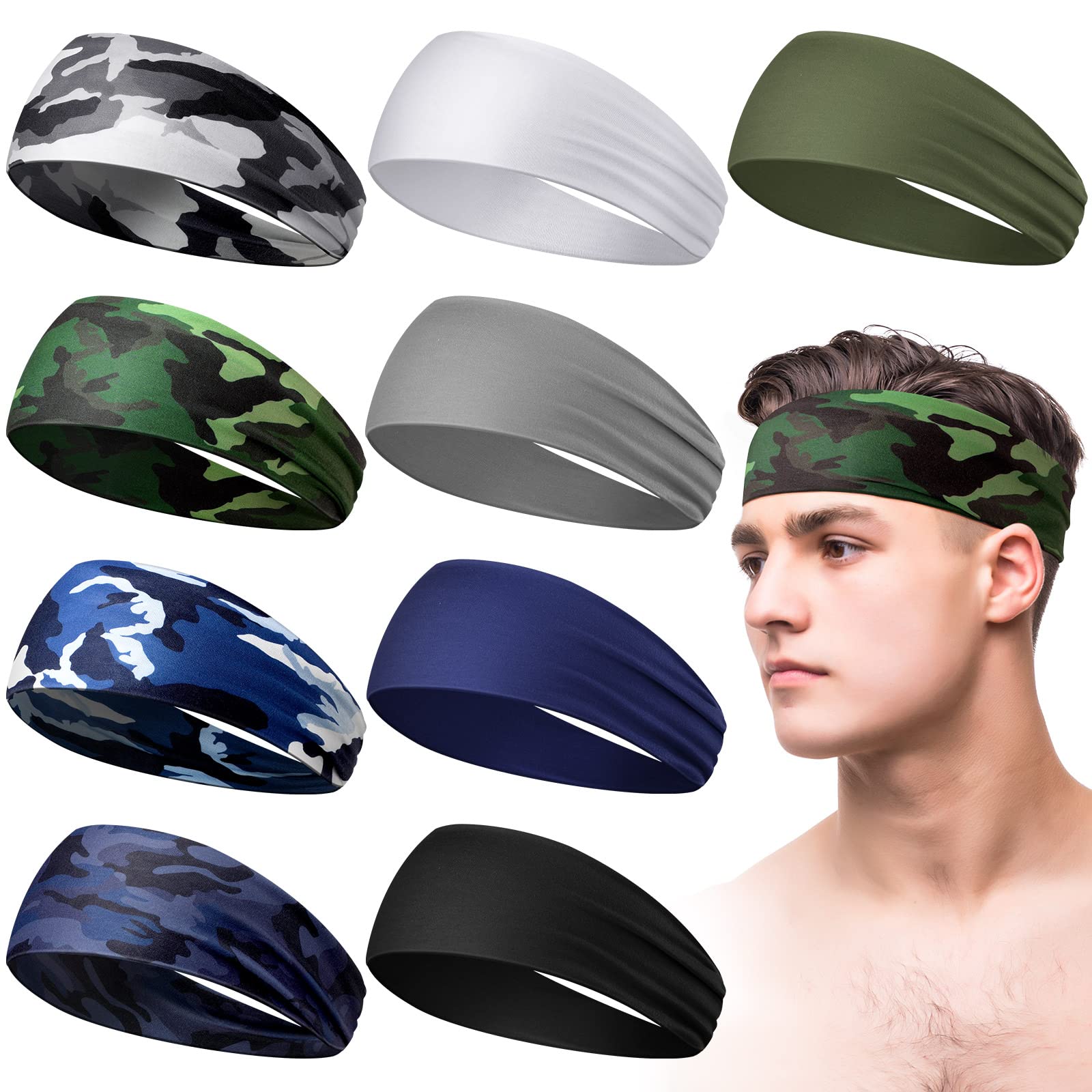 Bandas de sudor para hombres, para entrenamiento, deportes, diadema para hombres, diadema de camuflaje, diadema que absorbe el sud