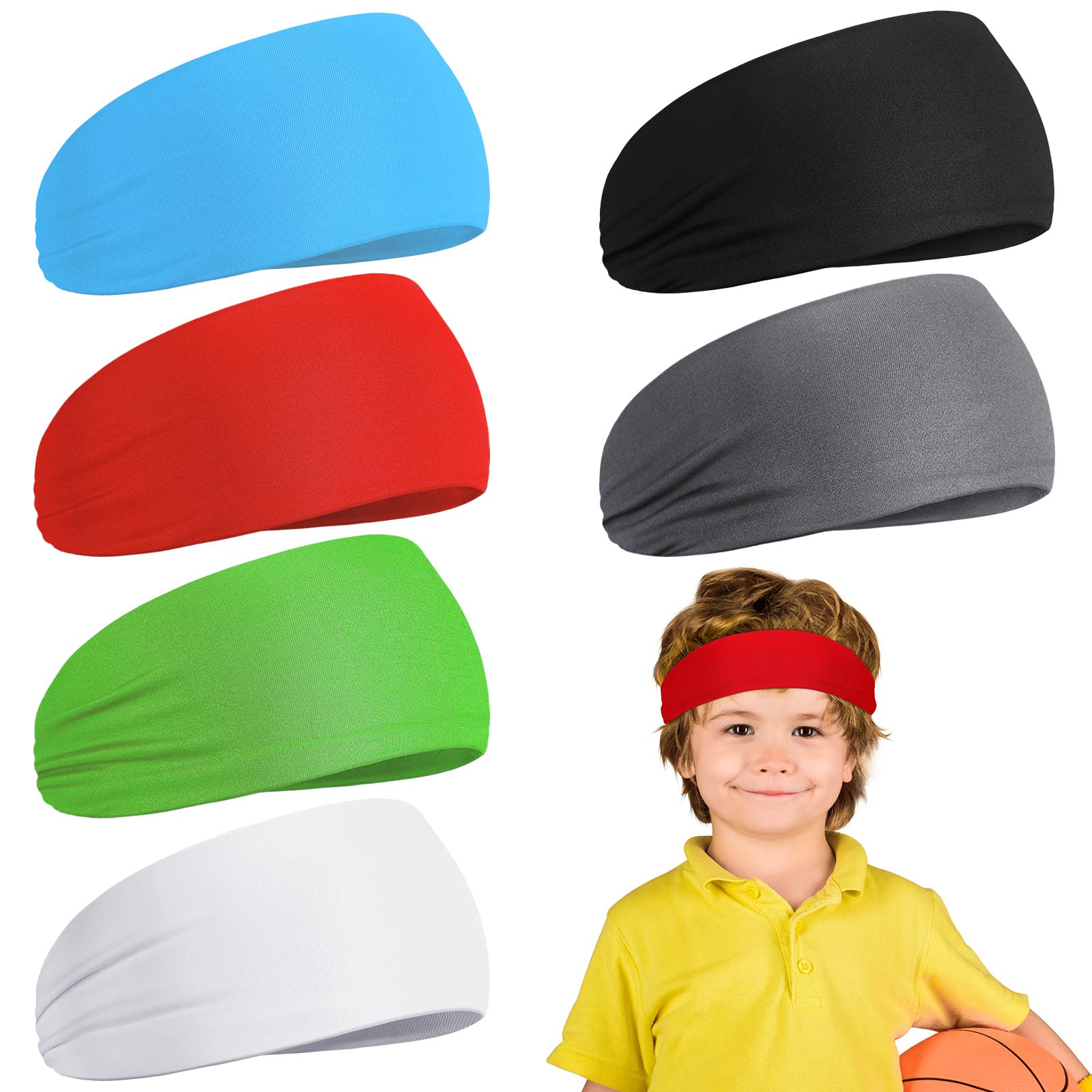 6 diademas deportivas para niños, diademas que absorben el sudor, suaves y atléticas, bandas elásticas para niños, diadema transpi