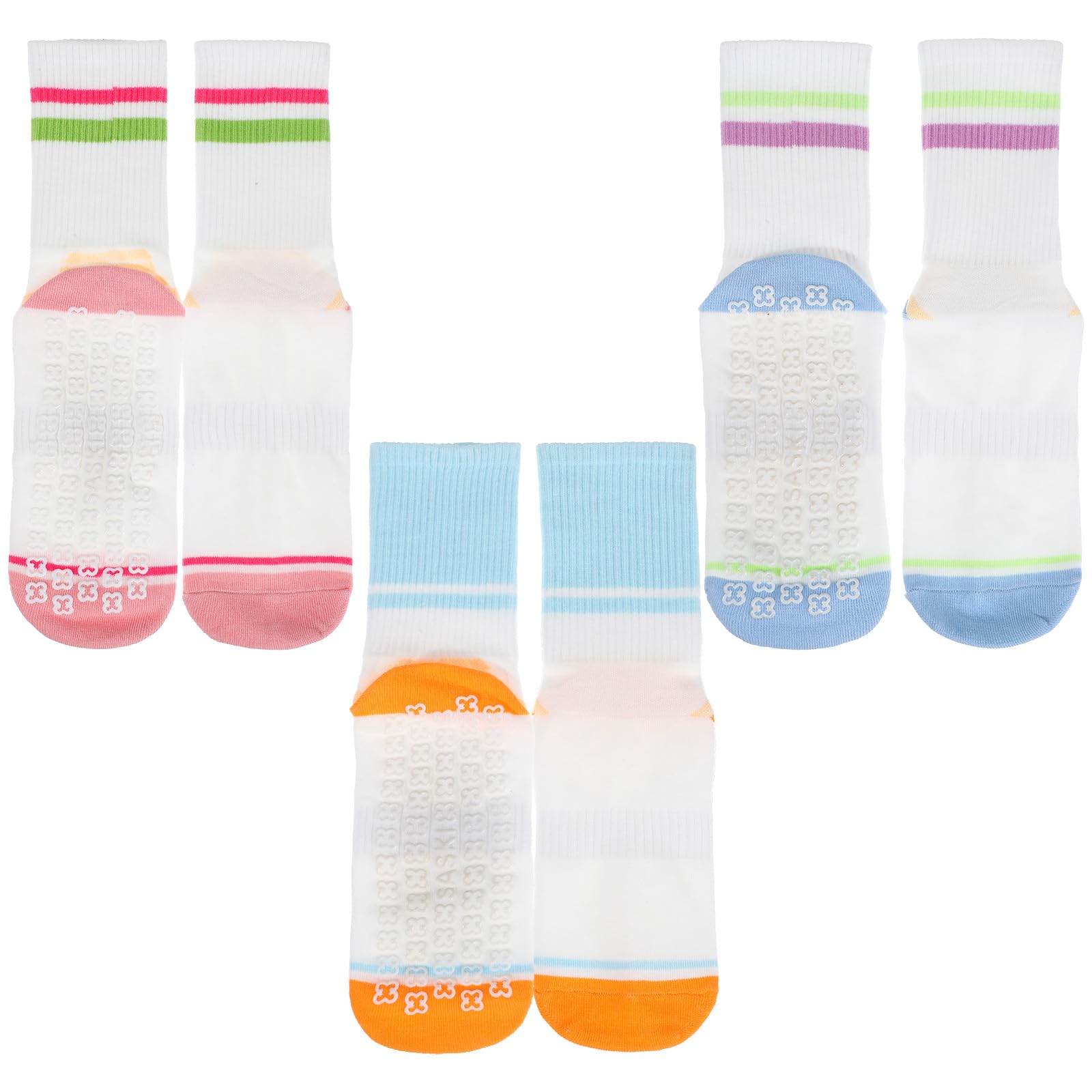 Giantree 3 Pairs of Women’s Pilates Anti-Slip Socks, Yoga Anti-Slip Striped Color-Blocked Socks, Sticky Ballet Fitness Sock, Suita
