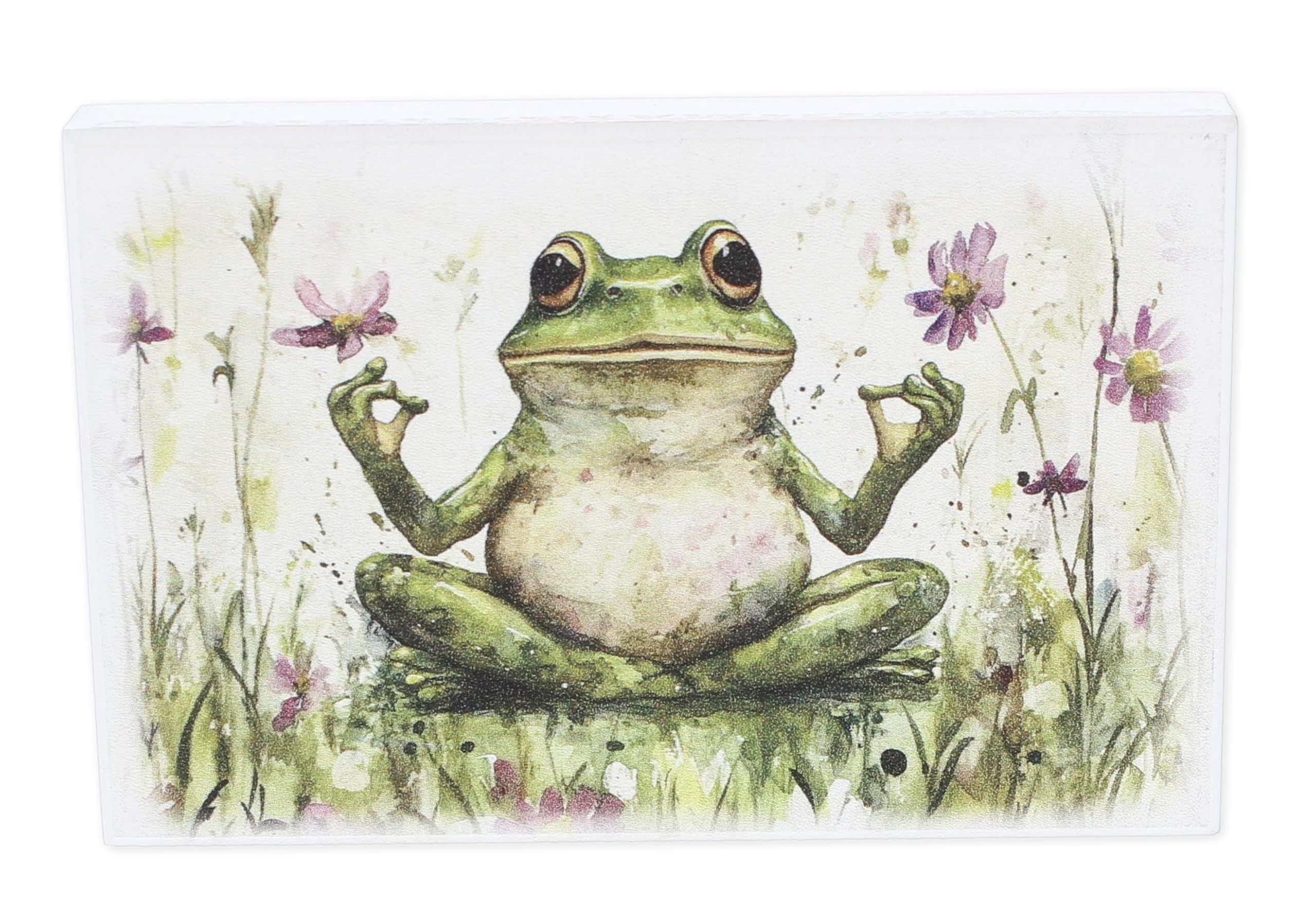 Mini Frog Yoga Sign With Rustic Charm – Small Wooden Block Sign With Meditating Frog Design – Whimsical Yoga Decor For Zen Spaces