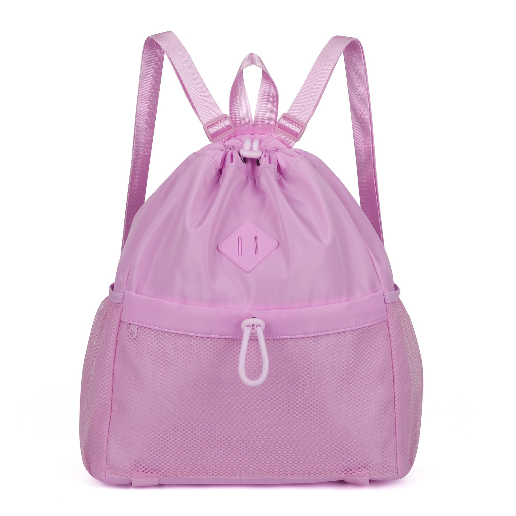 ALUSBELL Drawstring Backpack for Women, Water-Resistant String Backpack, Lightweight Gym Bag with Yoga Mat Strap Purple