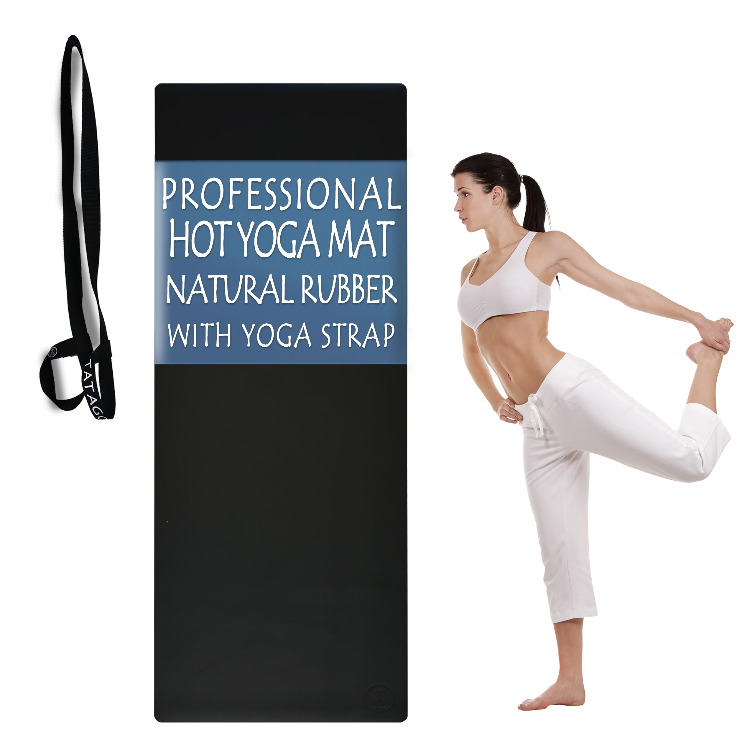 Tatago Esterilla de yoga caliente antideslizante de goma natural de grado profesional, tapete de Pliates, tapete de estiramiento o