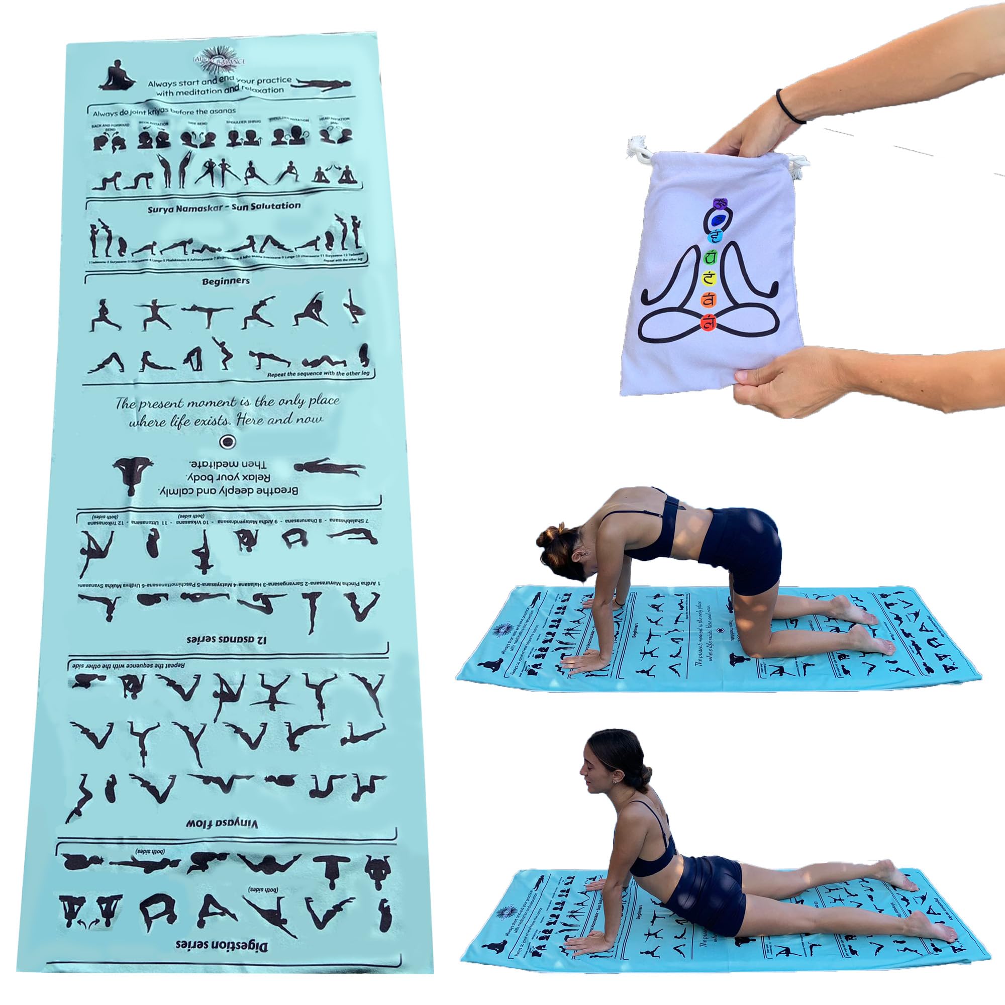 Toalla de yoga antideslizante – Poses de yoga ilustradas, microfibra absorbente para yoga caliente, toalla extra larga de secado r