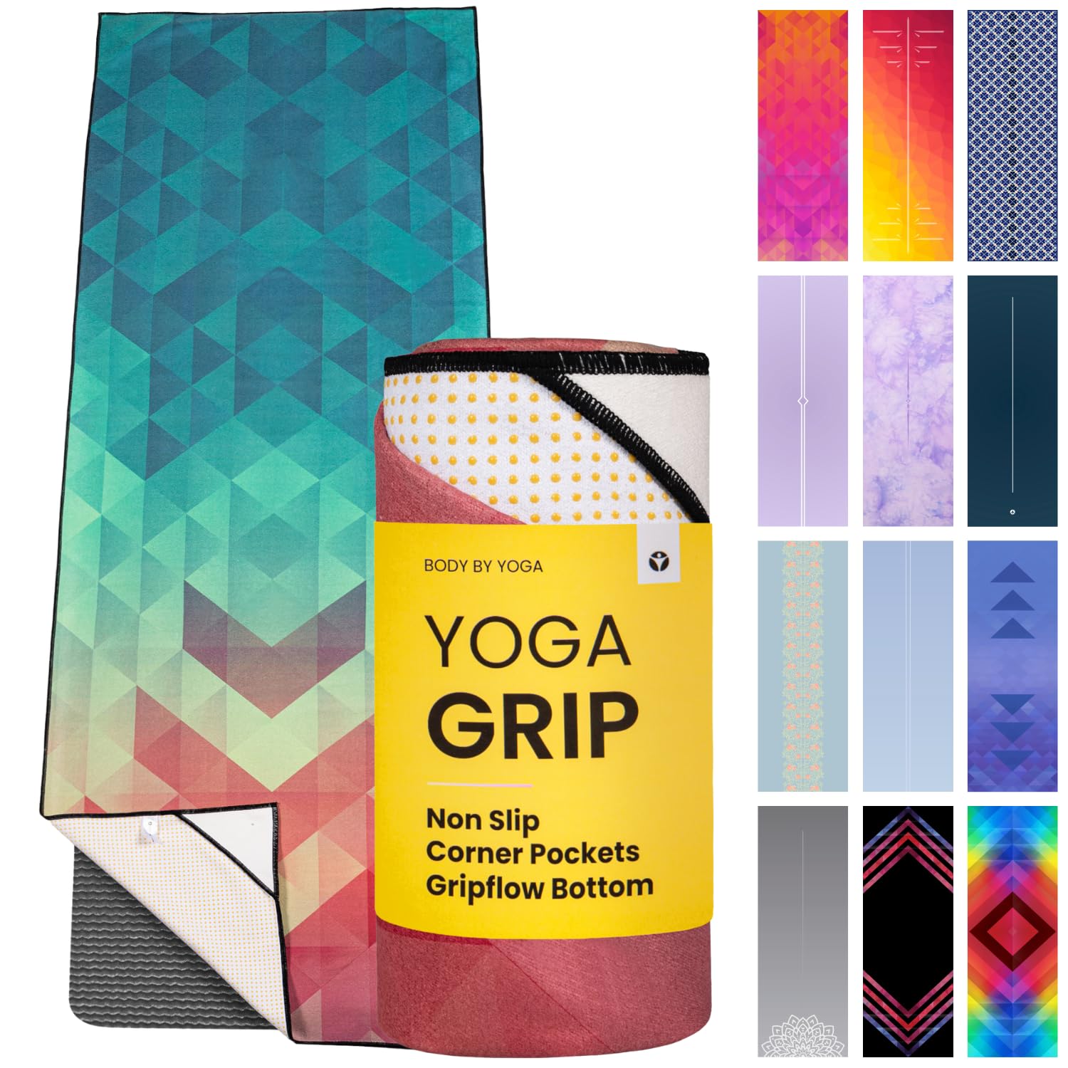Toalla de yoga de goteo – Toalla antideslizante para esterilla de yoga caliente con bolsillos en las esquinas, agarre antideslizan