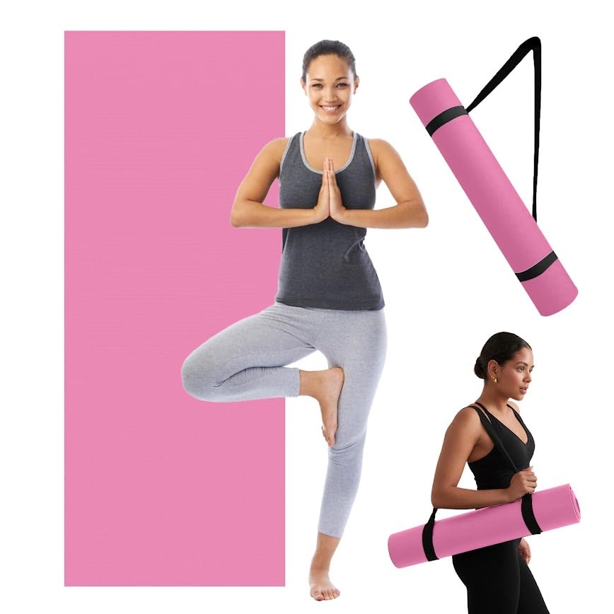 POE – Esterilla de yoga de 72 x 24 x 0.31 pulgadas de grosor, de alta densidad, antideslizante, con correa de transporte para yoga