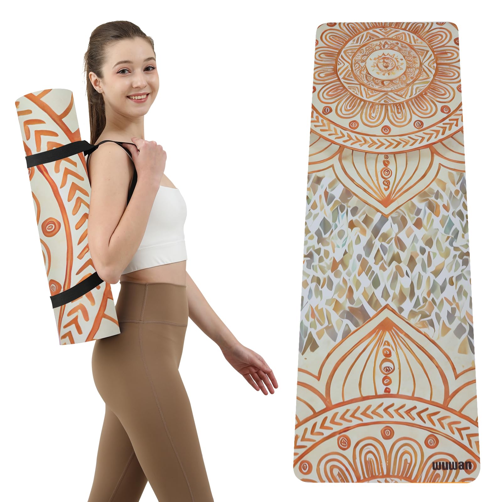 Non Slip Yoga Mat with Carrying Strap, TPE Exercise Mat for Men & Women, Pilates, Stretching, Fitness & Floor Workouts, 72″L x 24″