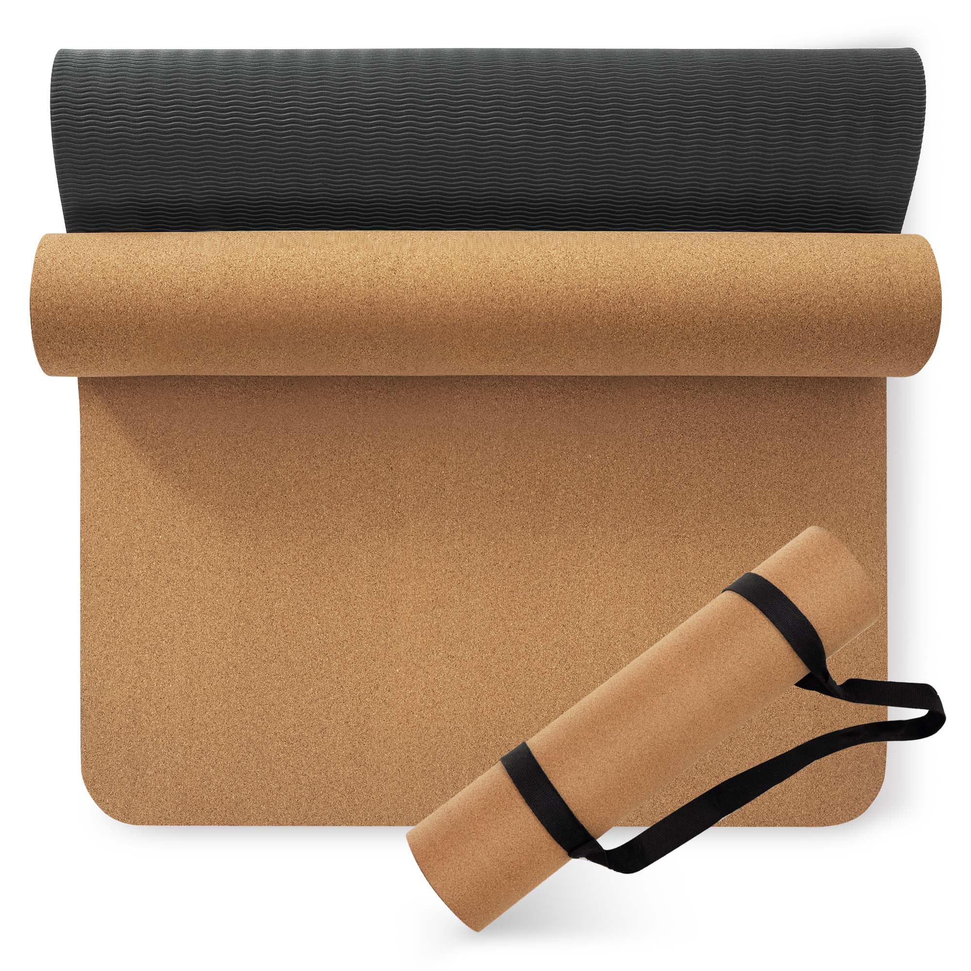 MHW – Live Well Thick Non-Slip Yoga Mats for Home Workout – Eco-Friendly Cork & TPE Yoga Mats | Extra Wide, Long, Foldable, Odorle