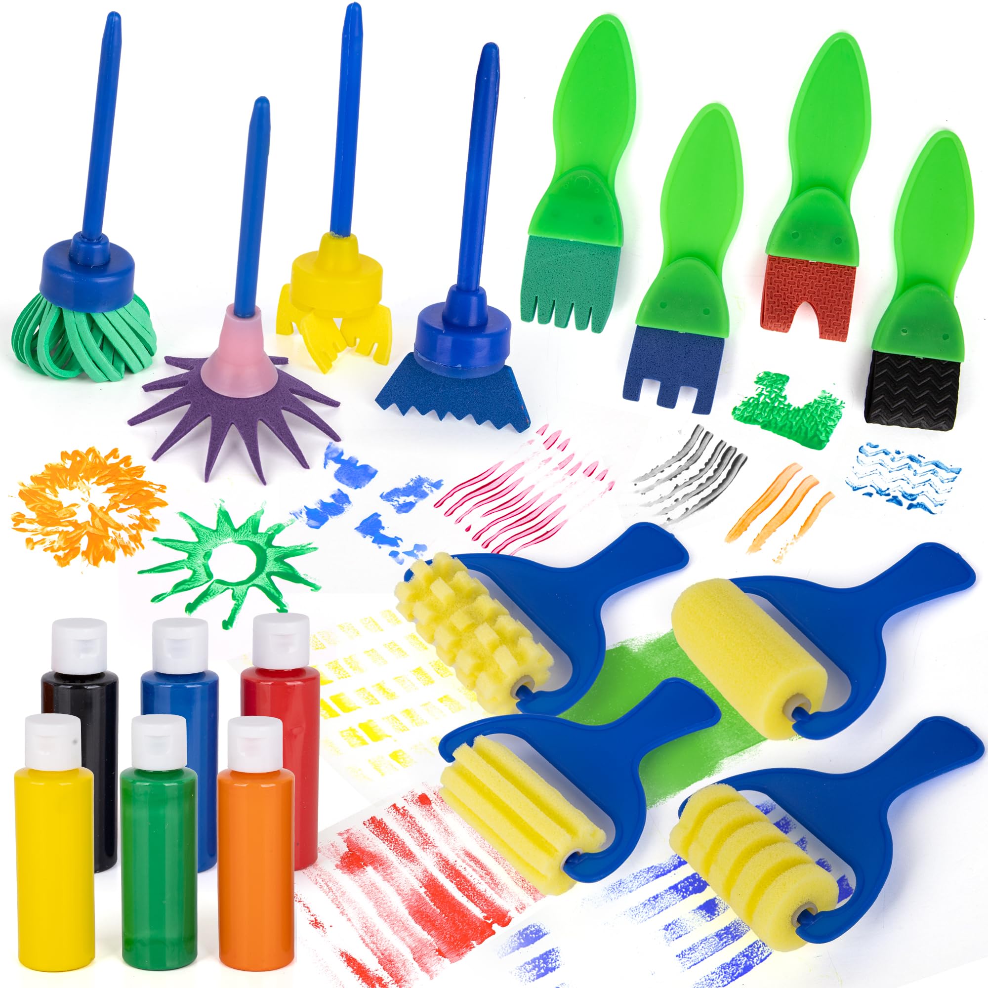 ArtCreativity Juego de pinceles de pintura y rodillos de espuma para niños, 18 piezas, kit de pintura prémium para niños pequeños