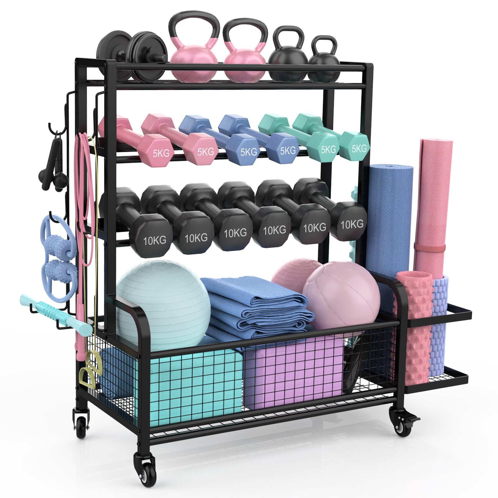 Organizador de gimnasio en casa, todo en uno, soporte para mancuernas de yoga, soporte para equipo de ejercicio de entrenamiento,