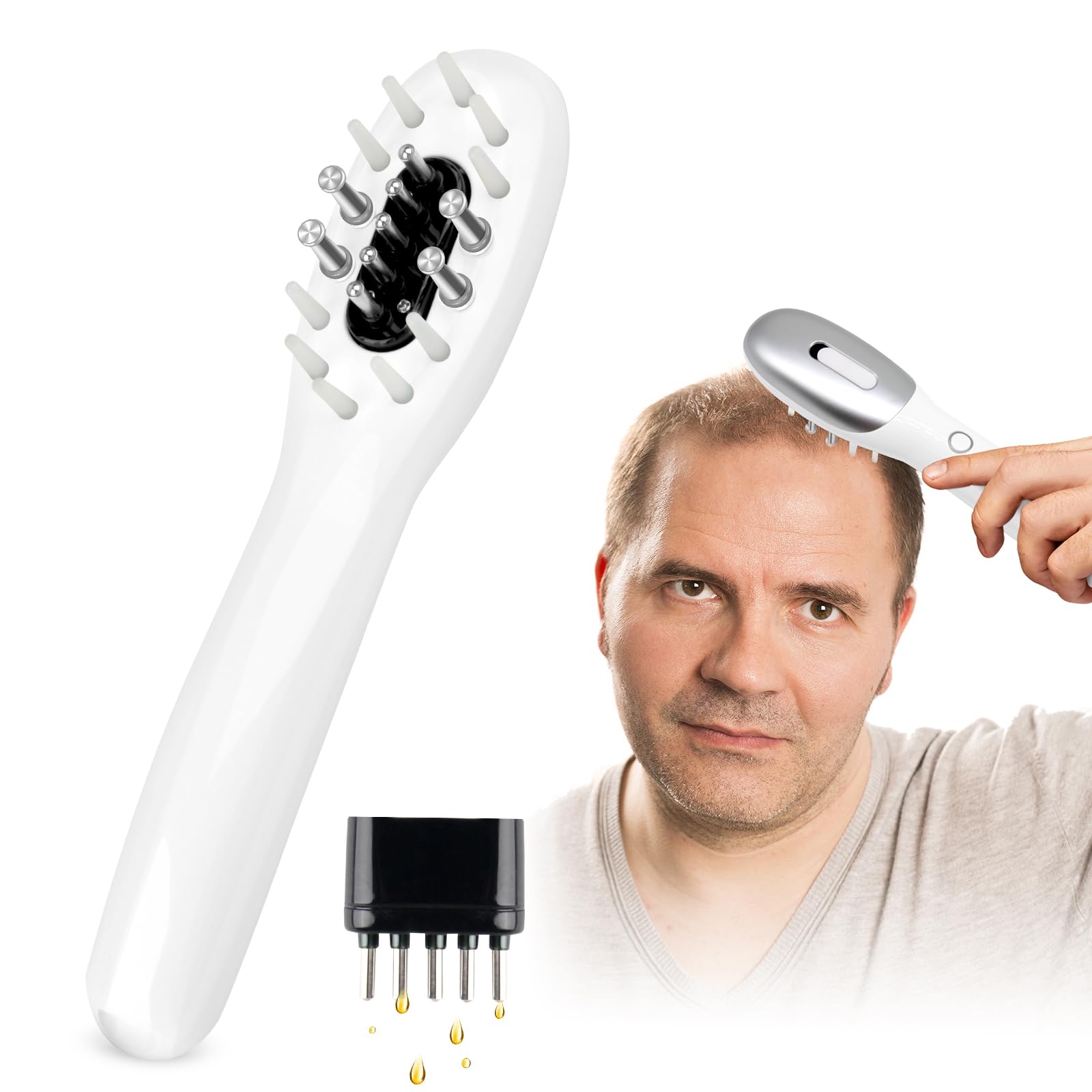 Aplicador de aceite 3 en 1 para cuero cabelludo con dispensador antigoteo, cepillo ligero para el cabello, masajeador eléctrico pa
