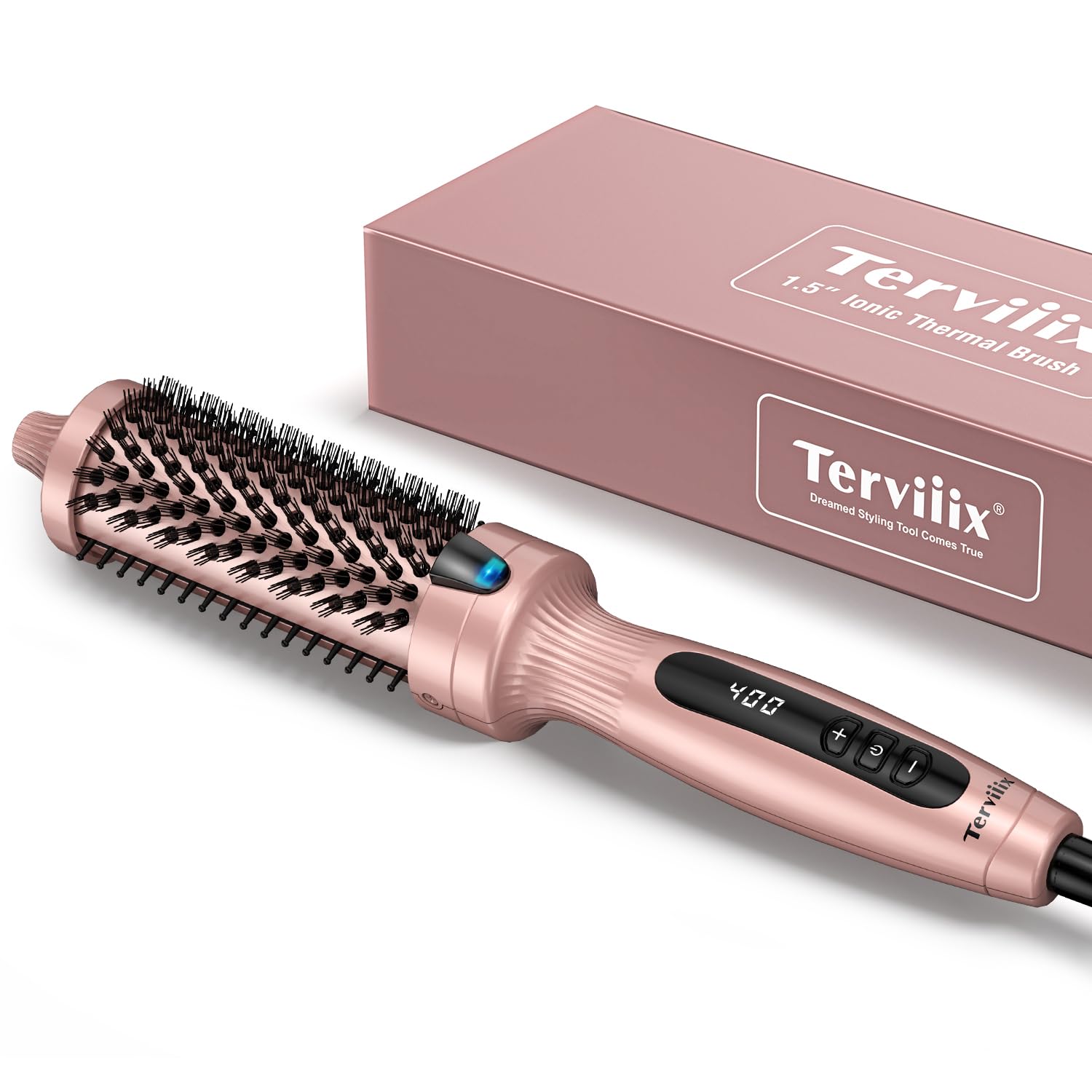 Terviiix Cepillo térmico para obtener un estilo voluminoso, cepillo caliente de calentamiento rápido, rizador térmico iónico de tu