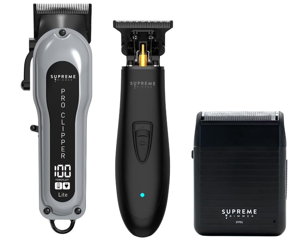 Supreme Trimmer Paquete de peluquero 3 en 1 | Pro Clipper Lite, recortadora DLC T-Shaper, afeitadora de lámina Solo Lite | Kit pro