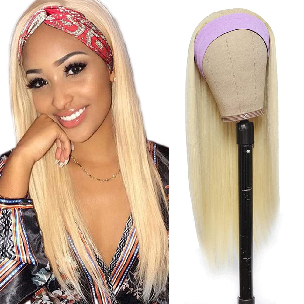 Peluca rubia con diadema de cabello humano 613 rubio lacio con diadema, pelucas sin encaje frontal, hechas a máquina, cabello Remy