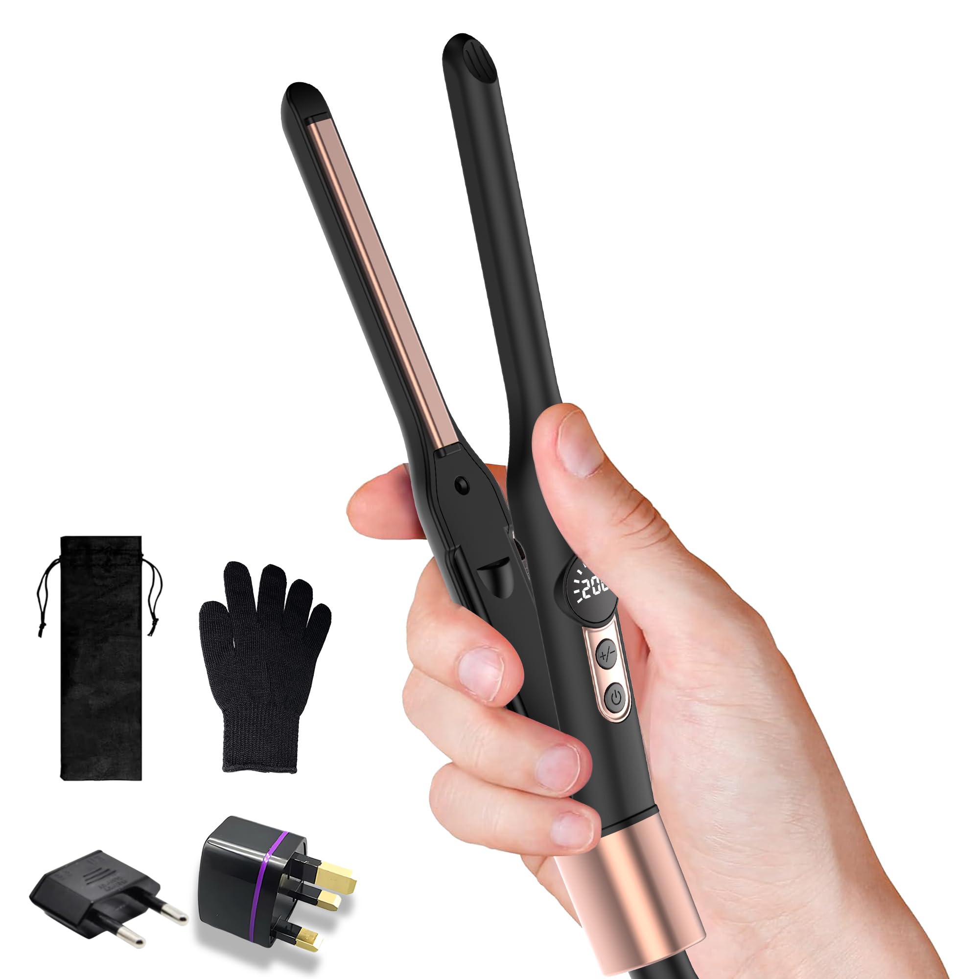 Plancha de pelo y rizador 2 en 1, plancha plana profesional de cerámica, calentamiento instantáneo con apagado automático y pantal