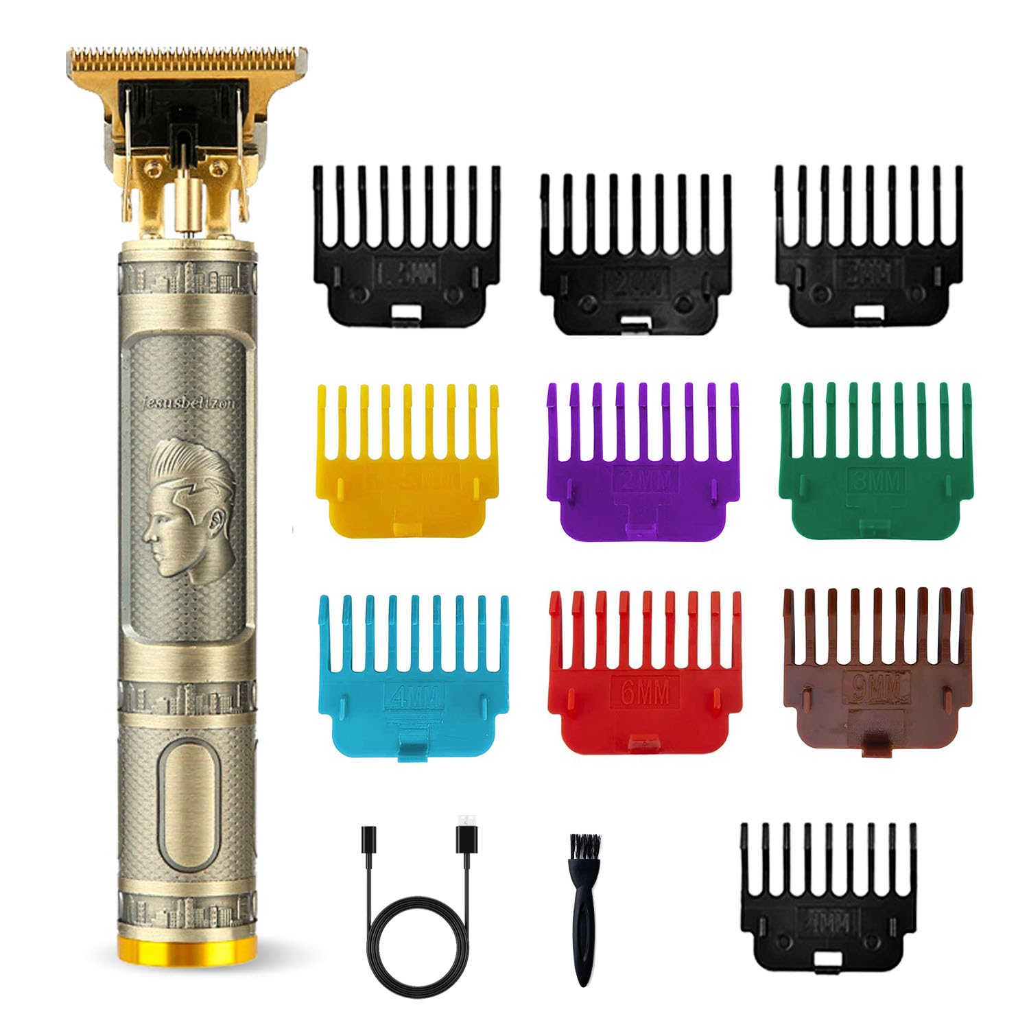 Cortadora de pelo eléctrica inalámbrica con 10 peines guía, afeitadora profesional recargable para barba en T para hombres, cortad
