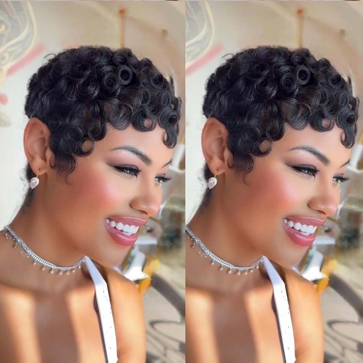 VRZ Pelucas Pixie para mujeres negras, peluca de corte Pixie, pelucas cortas en capas, hechas a máquina, peluca de corte de pelo c