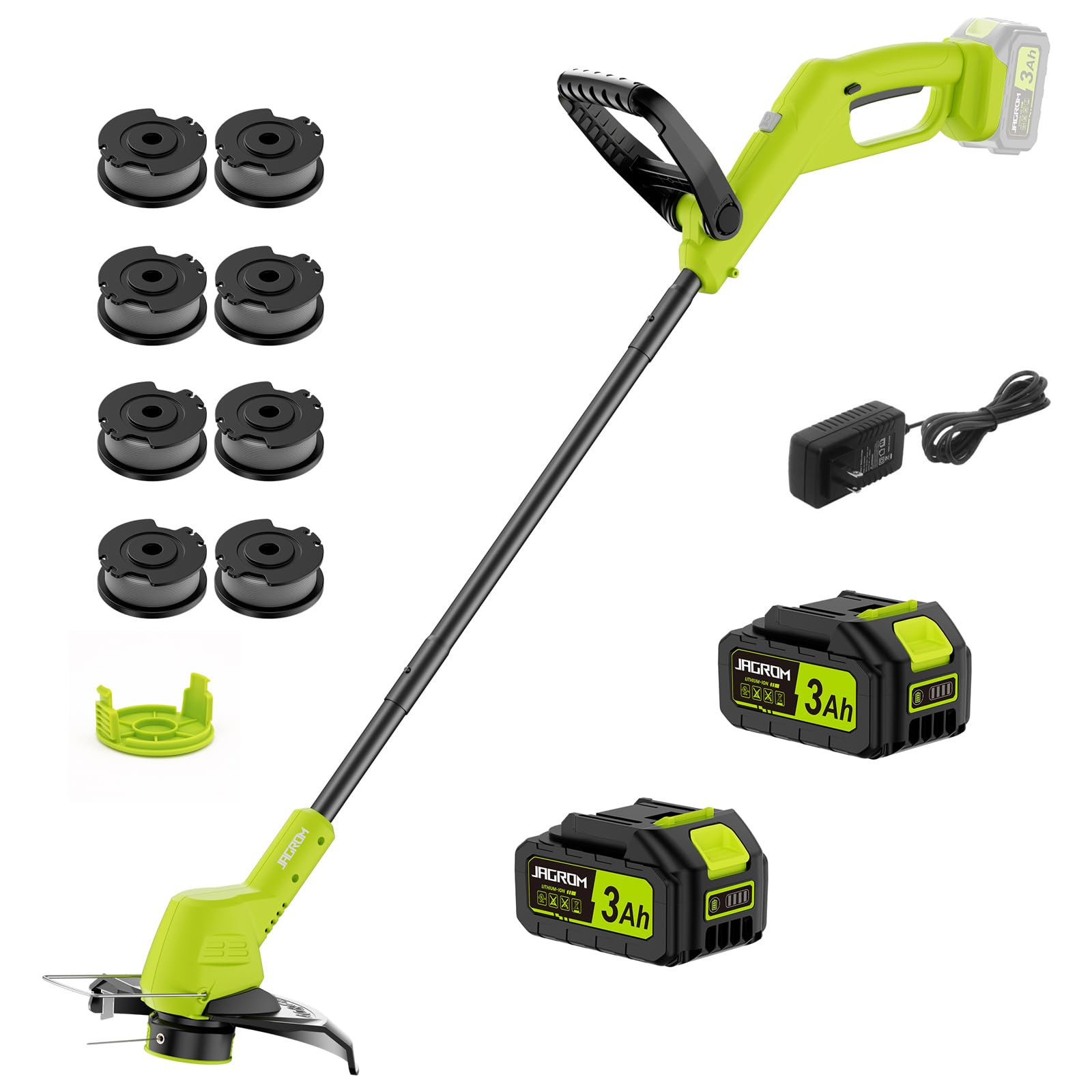 MZK Recortadora de cuerda inalámbrica de 20 V y 12 pulgadas, recortadora de césped y bordeadora con 8 carretes de repuesto, recort