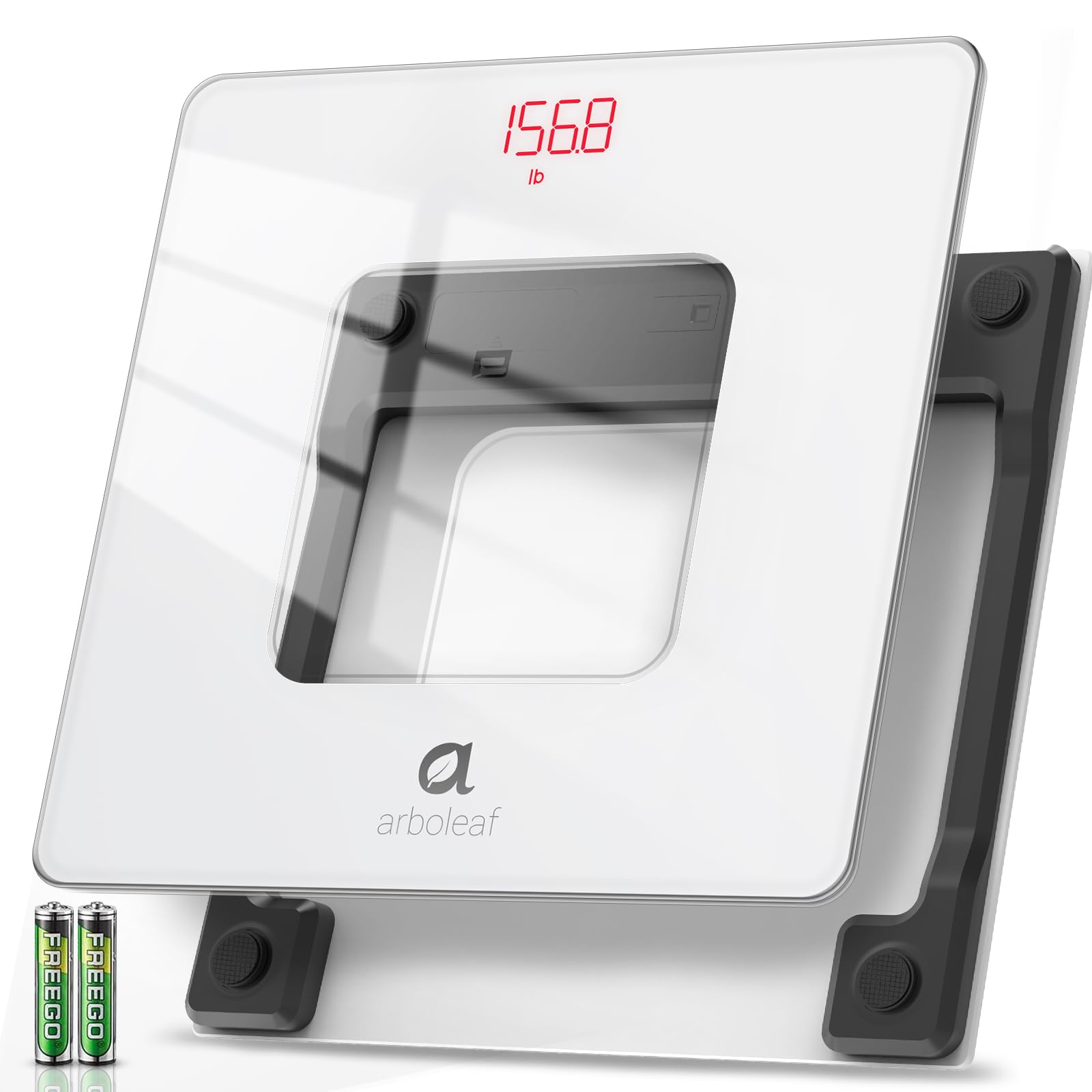 arboleaf Báscula para peso corporal, báscula digital de baño de alta precisión con pantalla LED, elegante y duradera, capacidad de