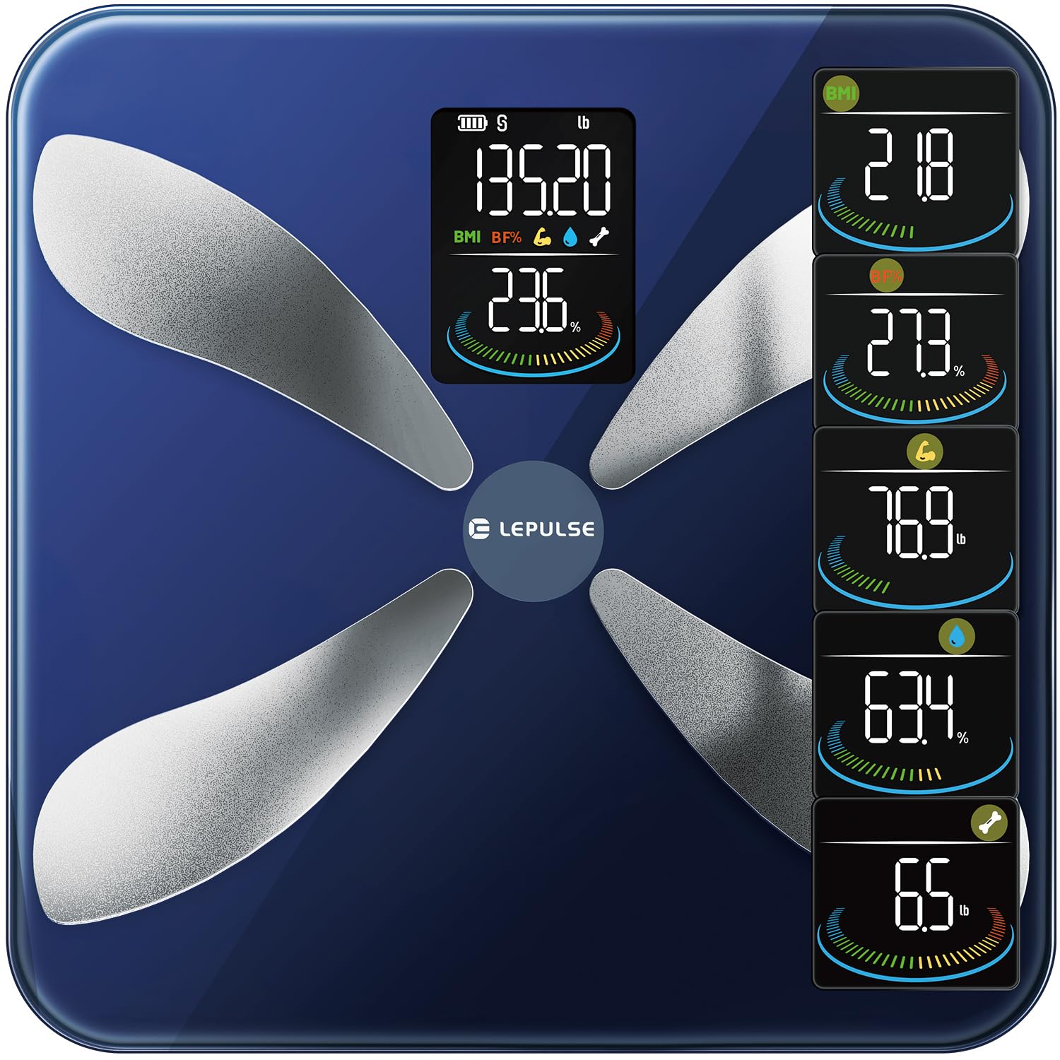 Lepulse Básculas para peso corporal y porcentaje de grasa, Báscula inteligente de pantalla grande de 8 electrodos, Monitor de comp